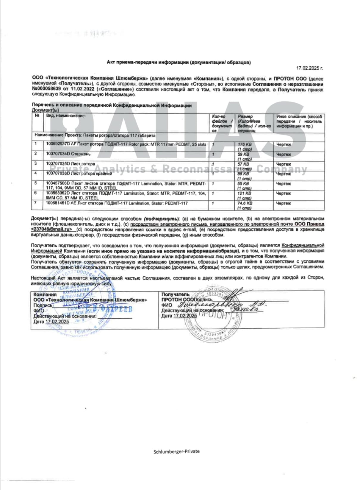 - В дальнейшем россиянам передали чертежи роторов и статоров – интеллектуальную собственность SLB, противоречащую санкциям США от 10 января 2025 года, запрещающим любые нефтяные услуги для лиц в россии.