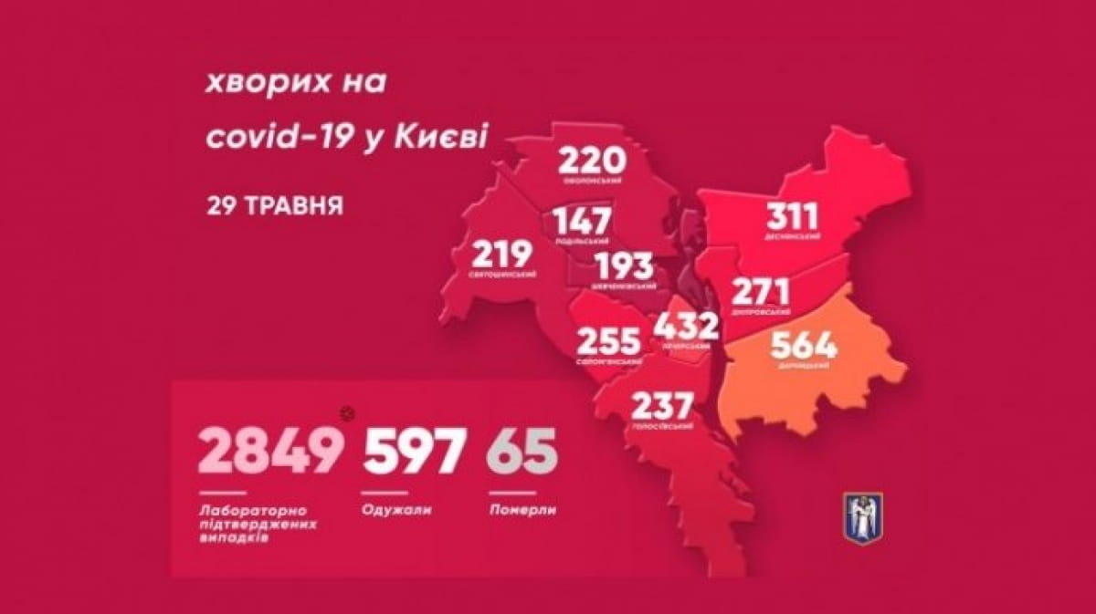 "Количество жителей Киева, у которых подтвердили заболевание коронавирусом, увеличилось на 56 человек. Из них 17 медиков. За минувшие сутки в столице от коронавируса умер один человек. Всего за период пандемии – 65 летальных случаев. На сегодня в столице уже 2849 подтвержденных случаев заболевания COVID-19", – сообщил Кличко.
