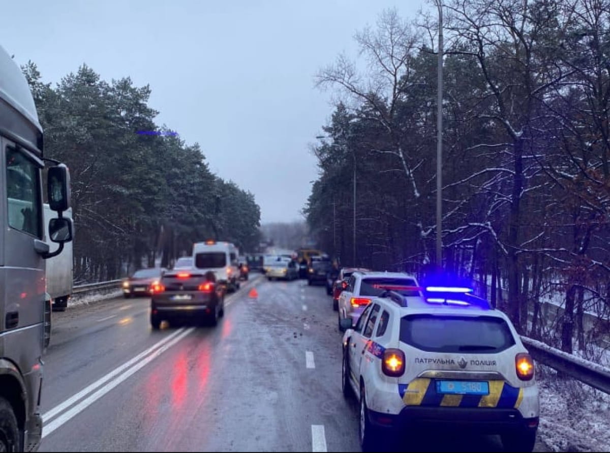 Утром 7 января под Киевом произошла масштабная авария с участием 13 автомобилей, из-за этого затруднено движение транспорта в сторону Вышгорода.