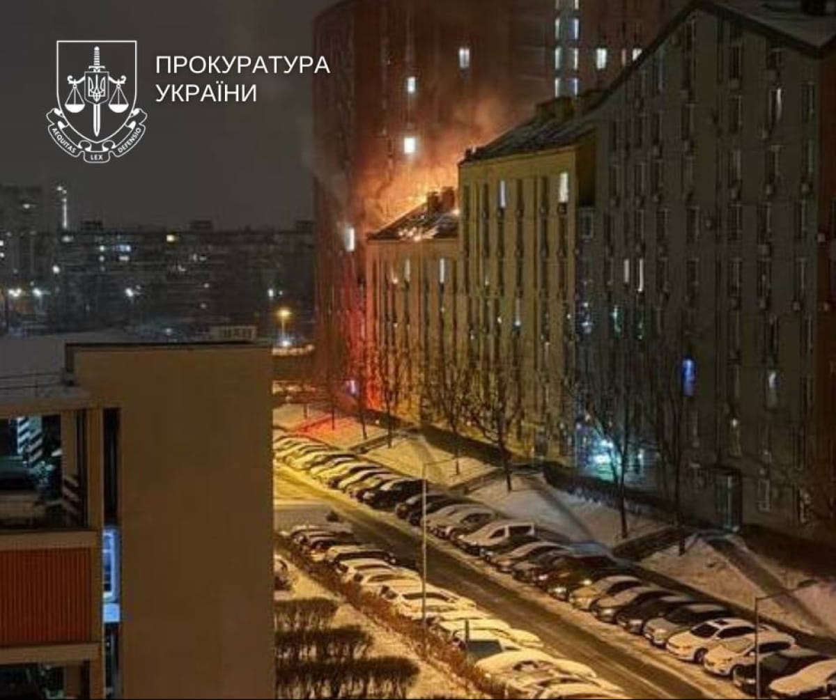 В Днепровском районе поврежден незаселенный частный дом, а впоследствии стало известно о попадании БпЛА в 12-этажный жилой дом, что вызвало пожар и частичные разрушения.