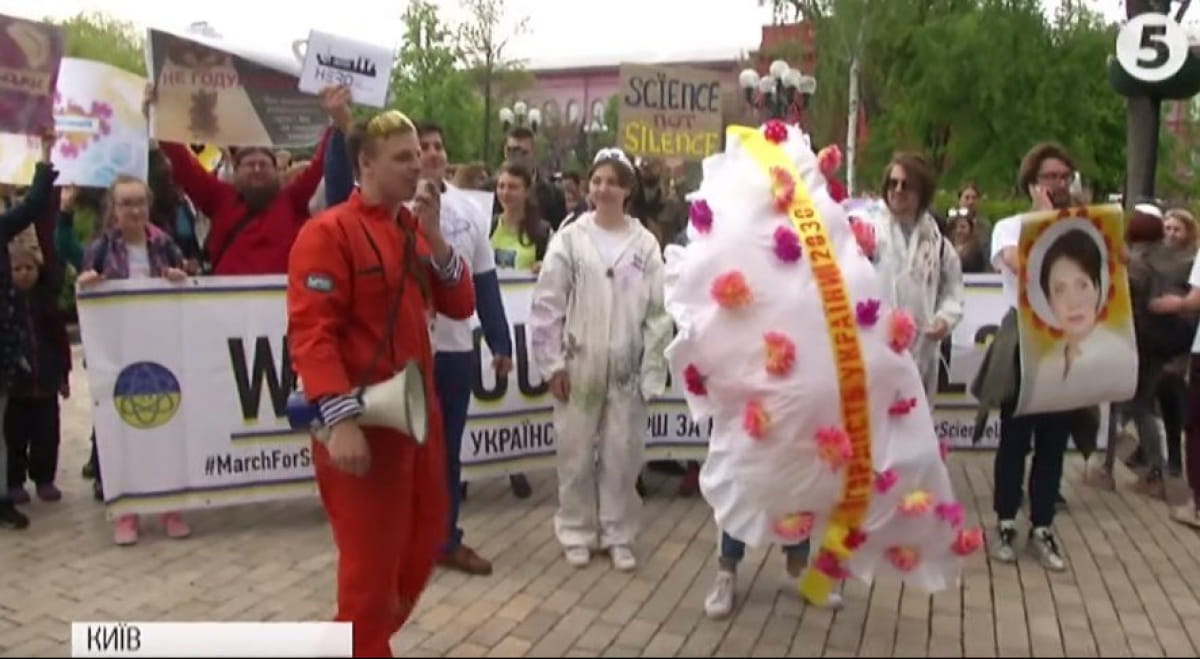 В стилизованных костюмах и с плакатами по центру Киева движутся несколько сотен ученых. Главная цель – это борьба с фейкньюс, с псевдонаучными представлениями и напоминание всему миру: если вы не будете прислушиваться к ученым, вы получите плохой результат. С помощью необычных костюмов ученые хотят привлечь внимание к проблемам в области науки.