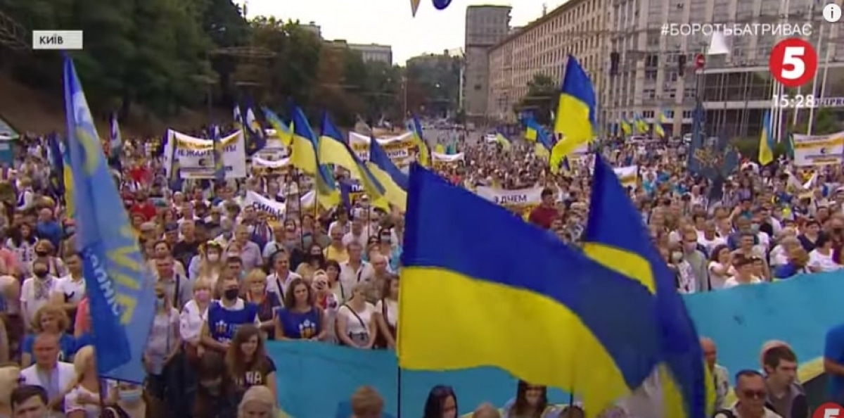 Там собрались тысячи украинцев. Колонну военных встречали как героев. Выступающие на сцене вспомнили последний год независимости, а также то, чего удалось достичь за 29 лет свободы.