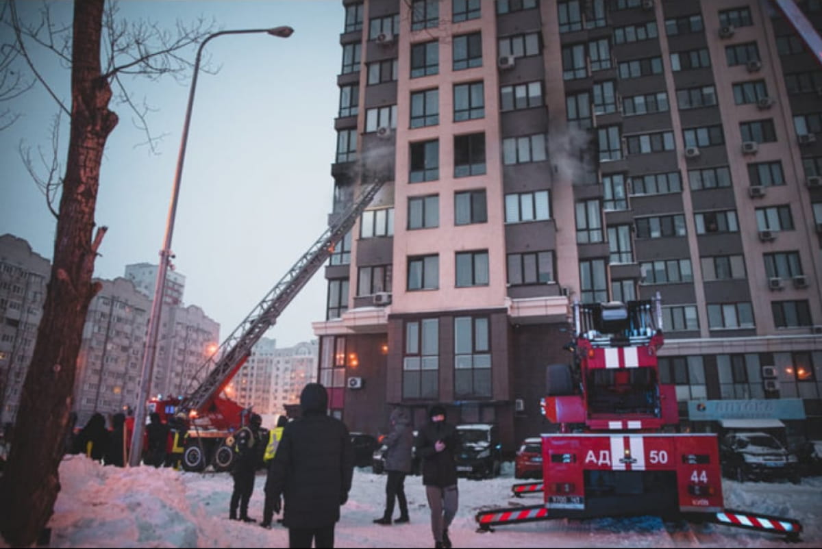 Пожар в Киеве. Около шести утра возгорание произошло на четвертом этаже 22-этажного дома в Голосеевском районе на ул. Академика Вильямса, 19/14.