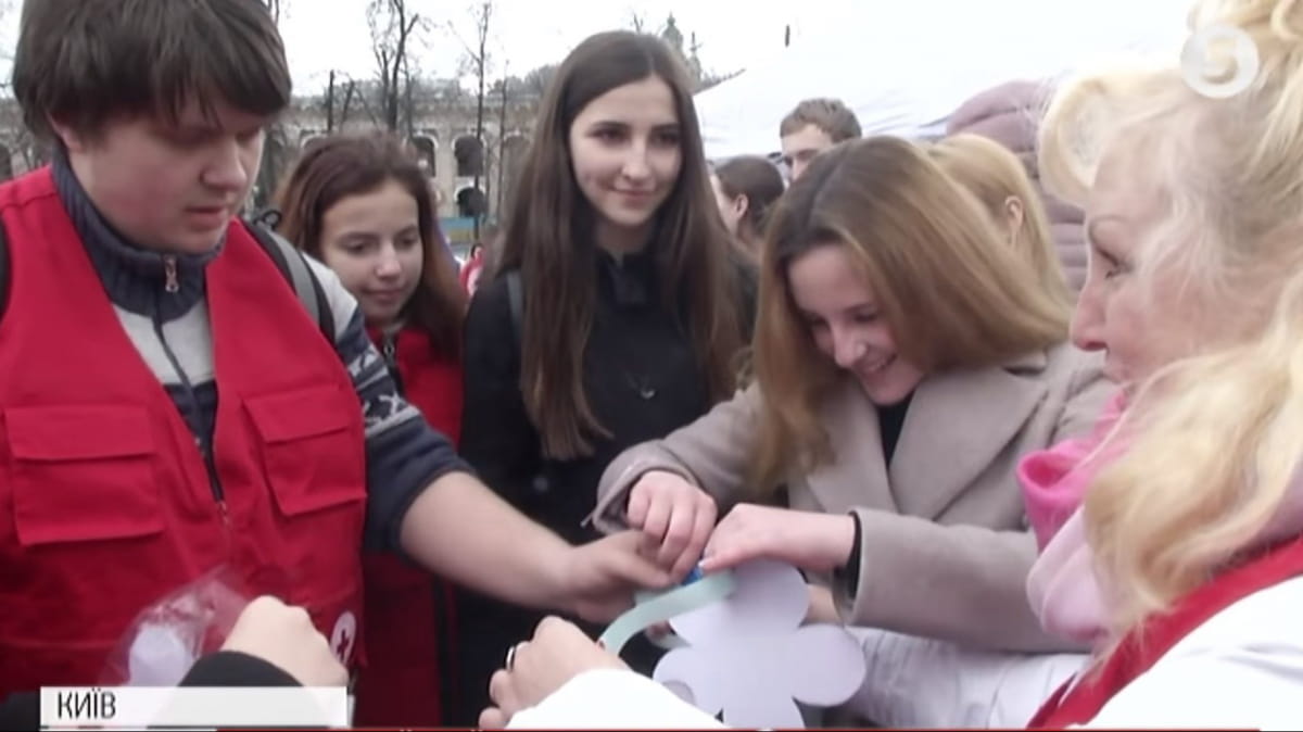 К акции в столице присоединились студенты из разных вузов. Они раздавали прохожим листовки с информацией о болезни и профилактику туберкулеза, а те в ответ цепляли бумажную ромашку к веревке, чтобы в конце акции узнать, сколько же киевлян присоединились к просветительскому мероприятию. На акцию пришли и люди, которые преодолели болезнь и вылечились.