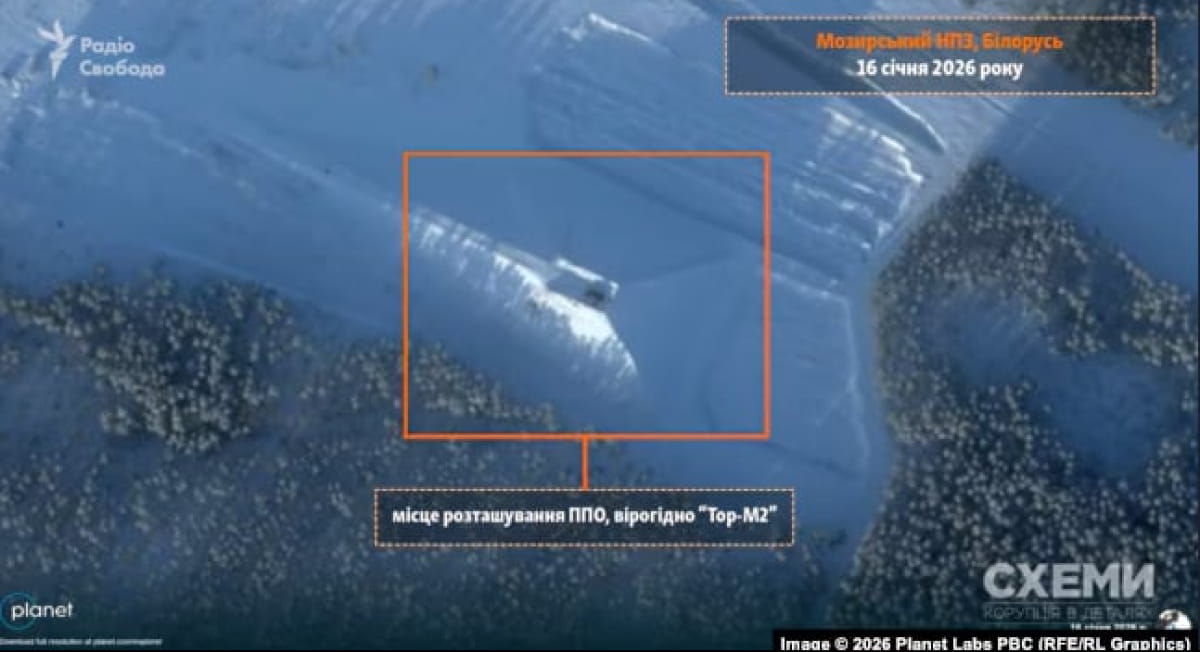 В Беларуси на территории Мозырского нефтеперерабатывающего завода, расположенного в 30 километрах к северу от границы с Украиной, появилась система противовоздушной обороны, похожая на российский ЗРК "Тор". Об этом сообщает проект "Схемы".