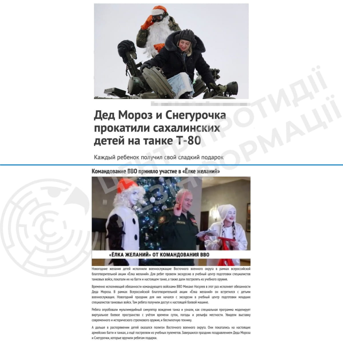 В Центре противодействия дезинформации отмечают, что даже образ Деда Мороза адаптируют под войну – его одевают в камуфляж и привозят на боевой технике. Такие элементы становятся частью новогодних мероприятий для детей в разных регионах россии.