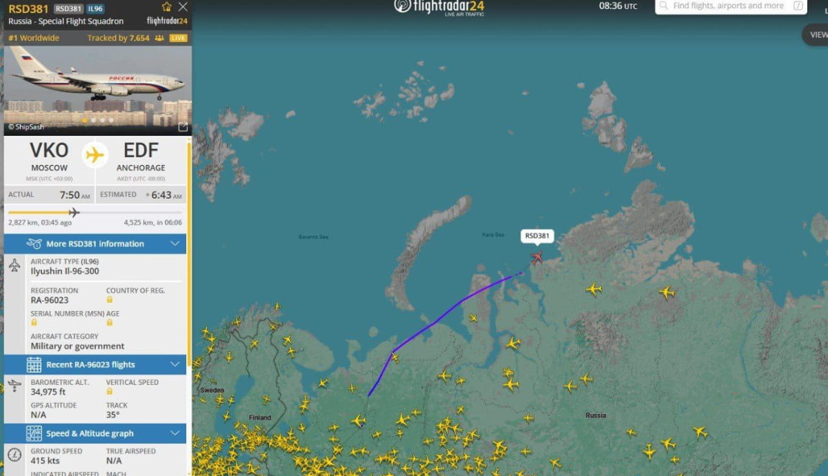 По данным Flightradar24, самолет с государственным номером следует в Аляску, где 15 августа должна состояться встреча Дональда Трампа и путина. Об этом сообщает "5 канал".