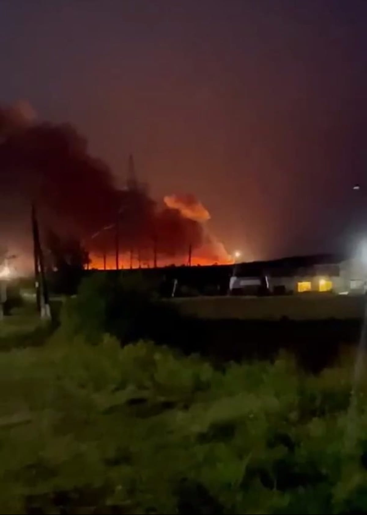 Судя по видео, опубликованных в сети, на месте возгорания происходит масштабная детонация боеприпасов.
