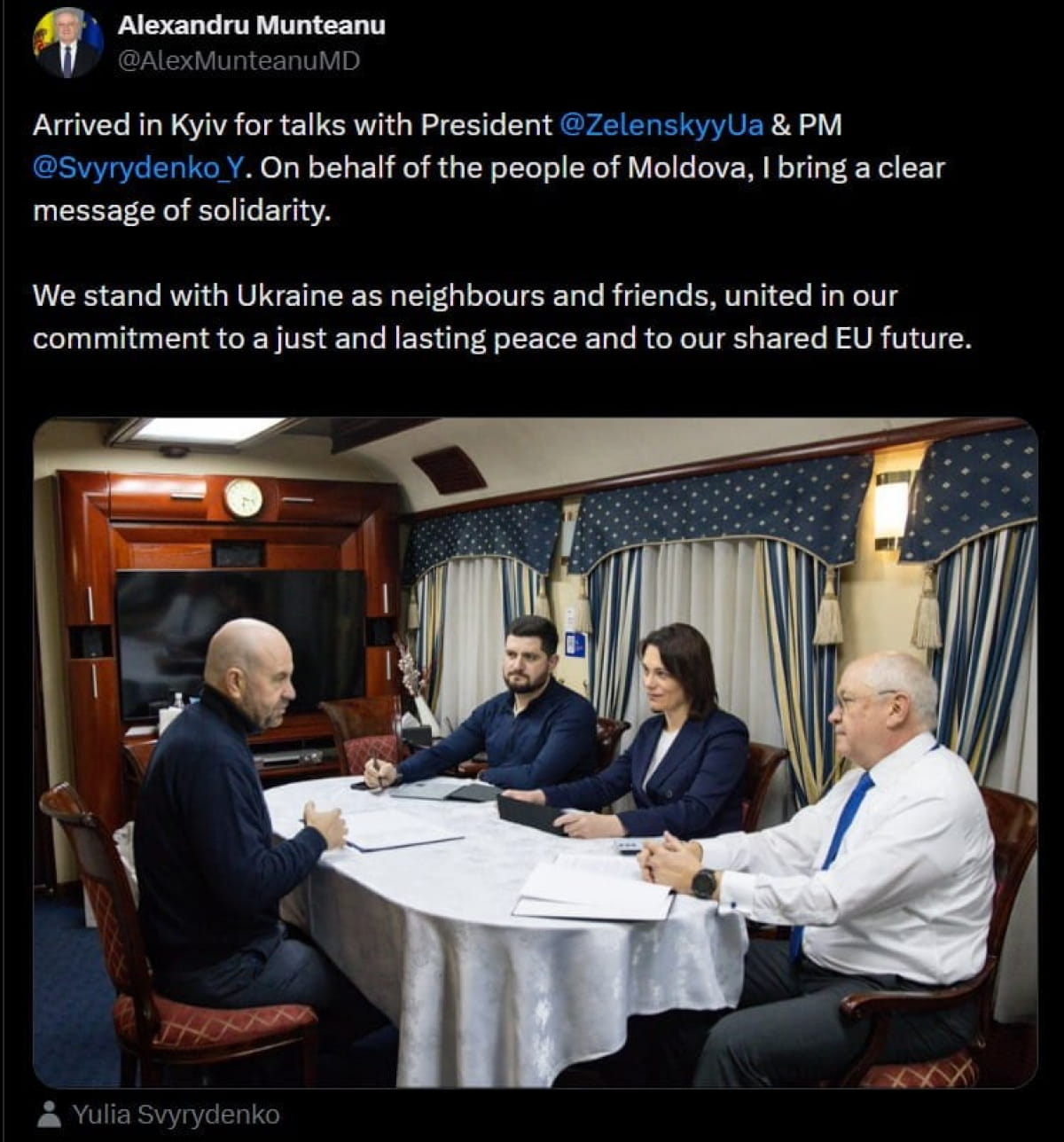 Александру Мунтяну добавил, что от имени народа Молдовы направляет четкий сигнал солидарности.