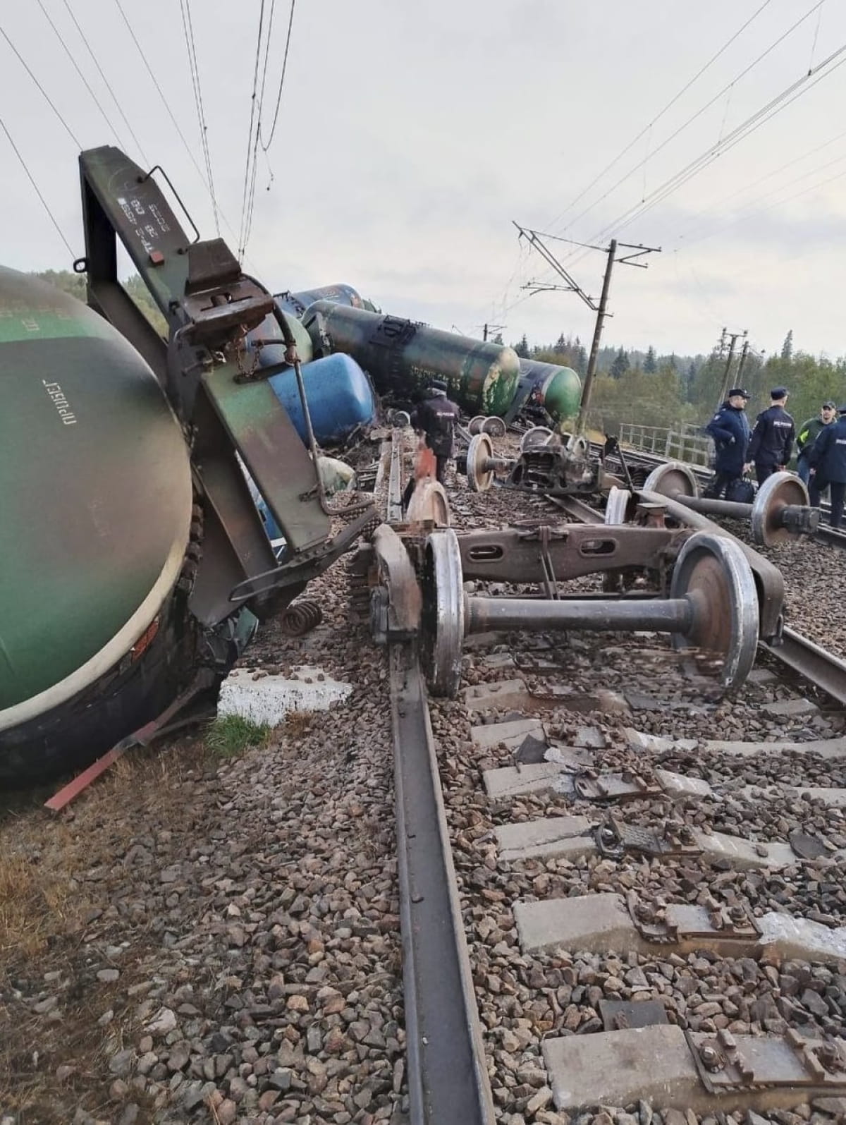 Инцидент произошел утром 7 октября в результате подрыва колеи. Локомотив и вагоны сошли с рельсов.