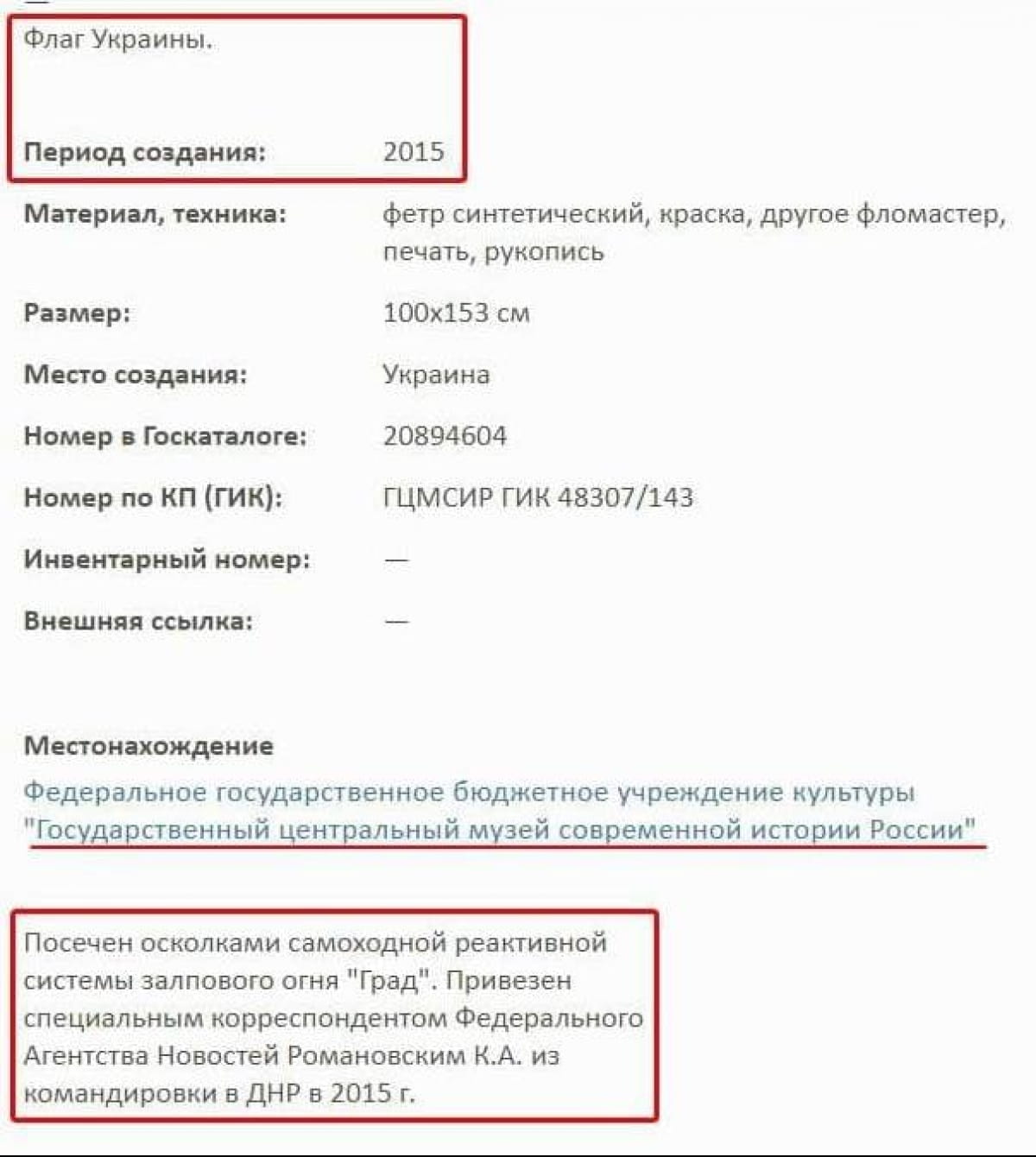 "Война "гражданская", а флаги Украины как трофеи хранятся в Государственном центральном музее современной истории России", – написал он.