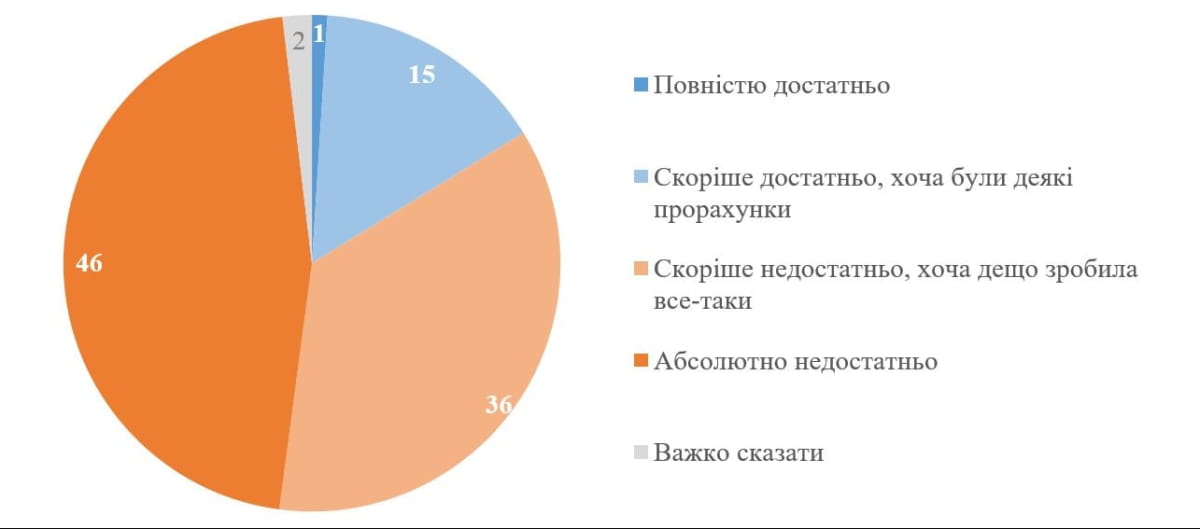 "В общей сложности 46% считают, что подготовка была абсолютно недостаточной, а 36% считают, что кое-что было сделано, но все же преимущественно недостаточно. Считают, что Украина сделала достаточно – 16%", – подчеркнул исполнительный директор КМИС Антон Грушецкий.