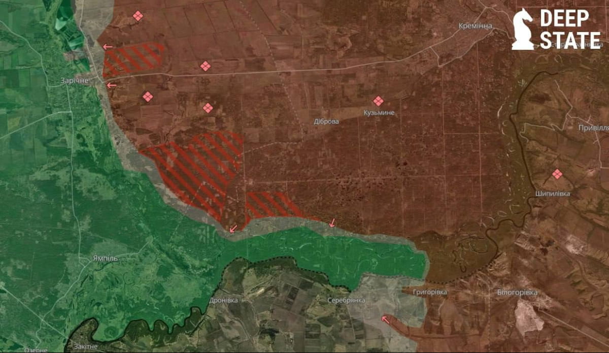 "Сейчас противник пытается полностью выдавить СОУ из Серебрянского лесничества и закончить многолетнюю историю боев за него. Противник оказывает давление в направлении Ямполя и уже фиксировался в районе дороги Ямполь–Заречное. В самом же Заречном ситуация складывается также неблагоприятным образом для украинских бойцов, так как противник понемногу затягивается в населенный пункт мимо позиции и выбивать их оттуда становится все труднее", – говорится там.