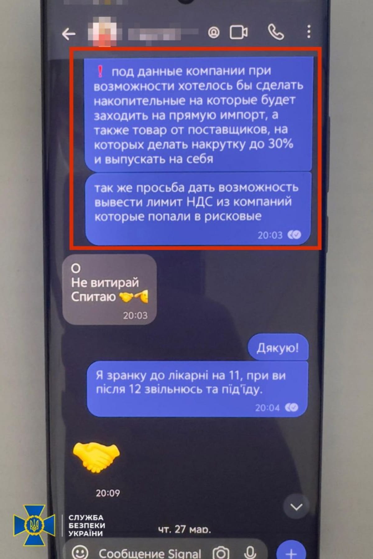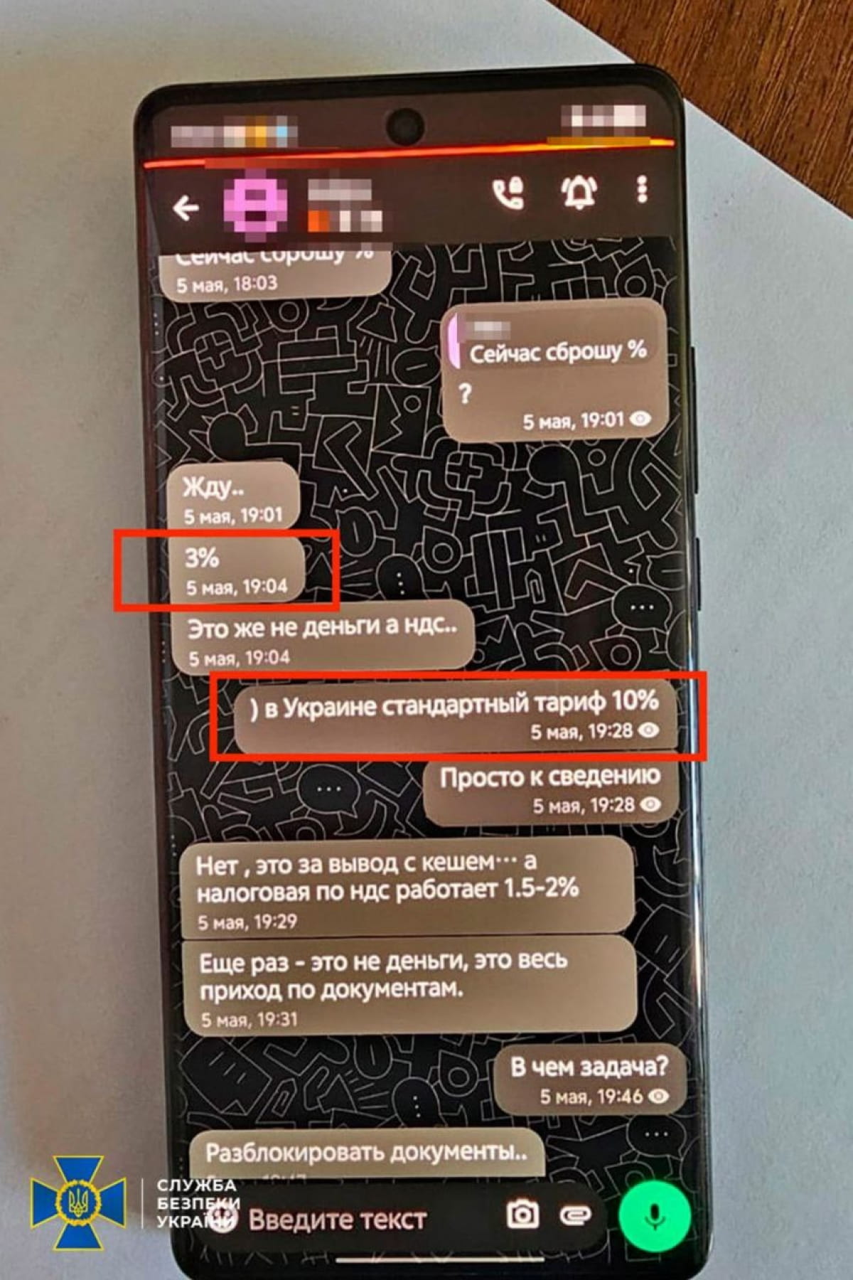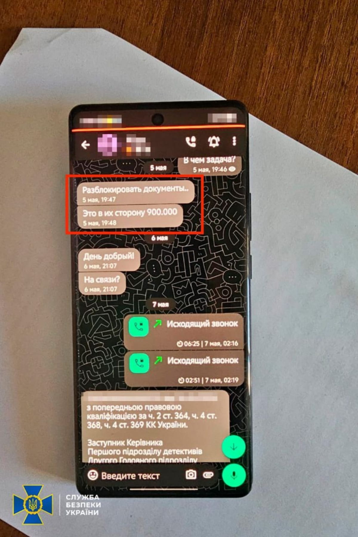 Правоохранители отмечают, что в обмен на эту "услугу" контакт пообещал передать Магамедрасулову взятку в размере 900 тыс. грн. Он якобы принял предложение и пытался решить вопрос через бывшего высокопоставленного чиновника Государственной налоговой службы.