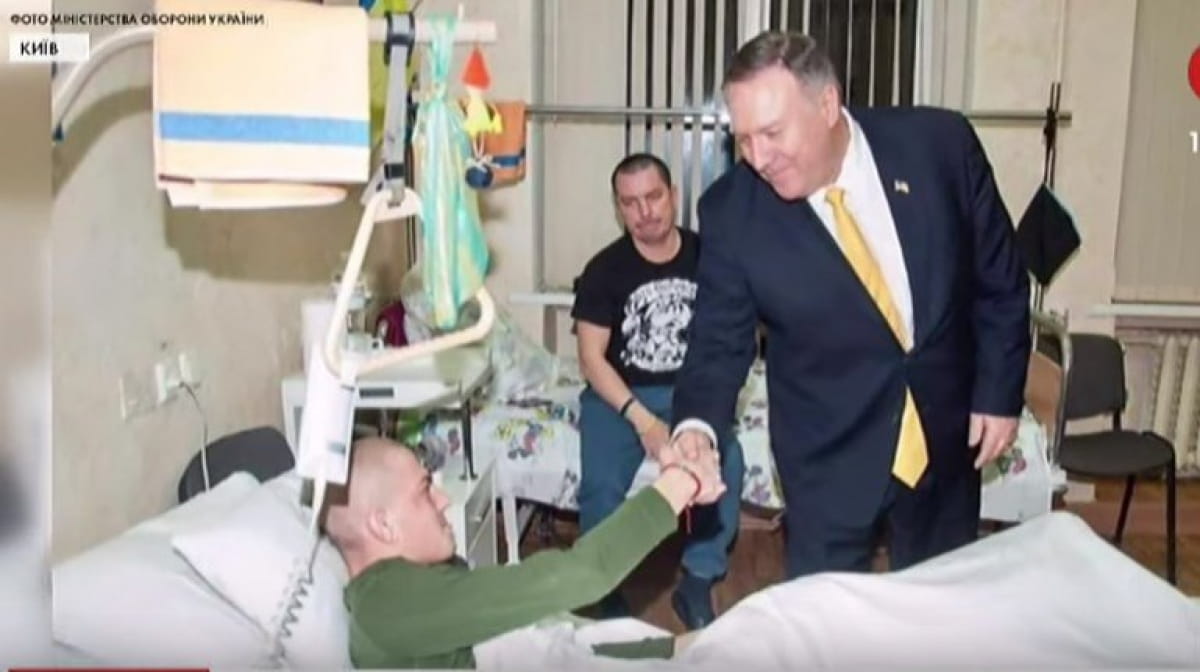 Госсекретарь США Майк Помпео посетил в госпитале раненых украинских воинов. Об этом в Фейсбуке рассказала волонтер Наталья Юсупова.