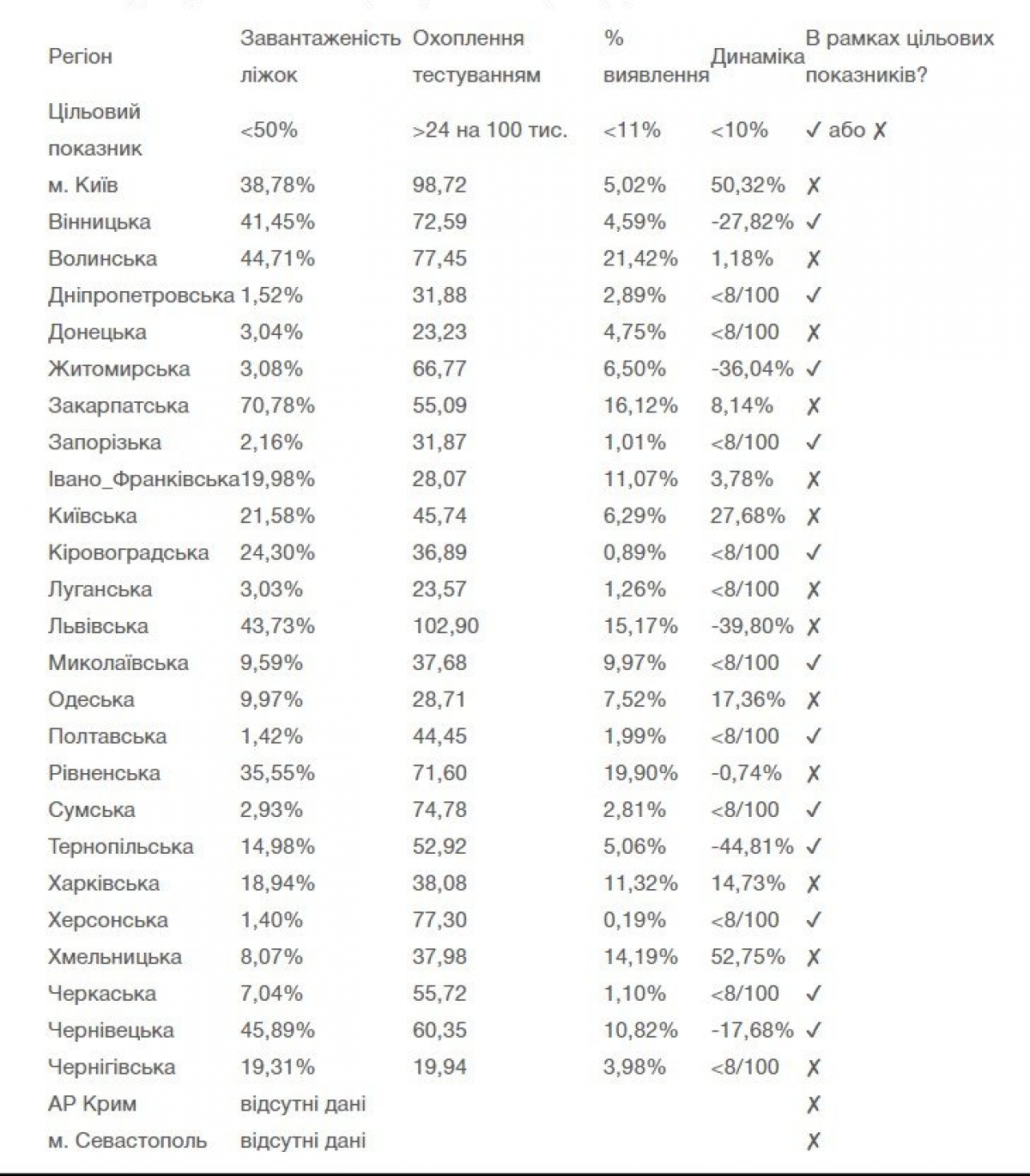 В Донецкой, Луганской и Черниговской население недостаточно охвачено тестированием (должно быть более 24 на 100 тыс.).