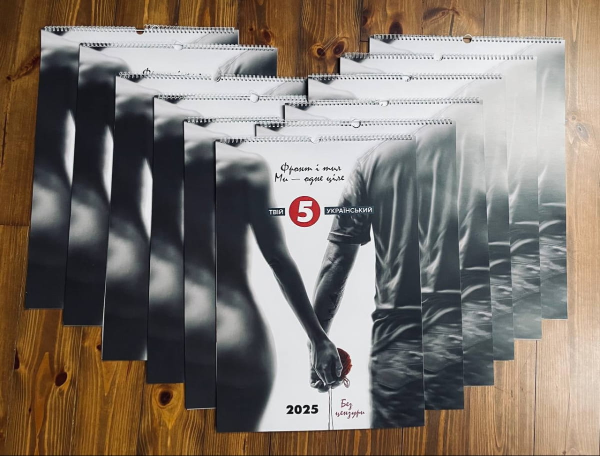 Все модели календаря – это команда "5 канала". Одни работают в эфире, другие – в армии. И вместе ежедневно воплощают свою главную цель – победить врага.