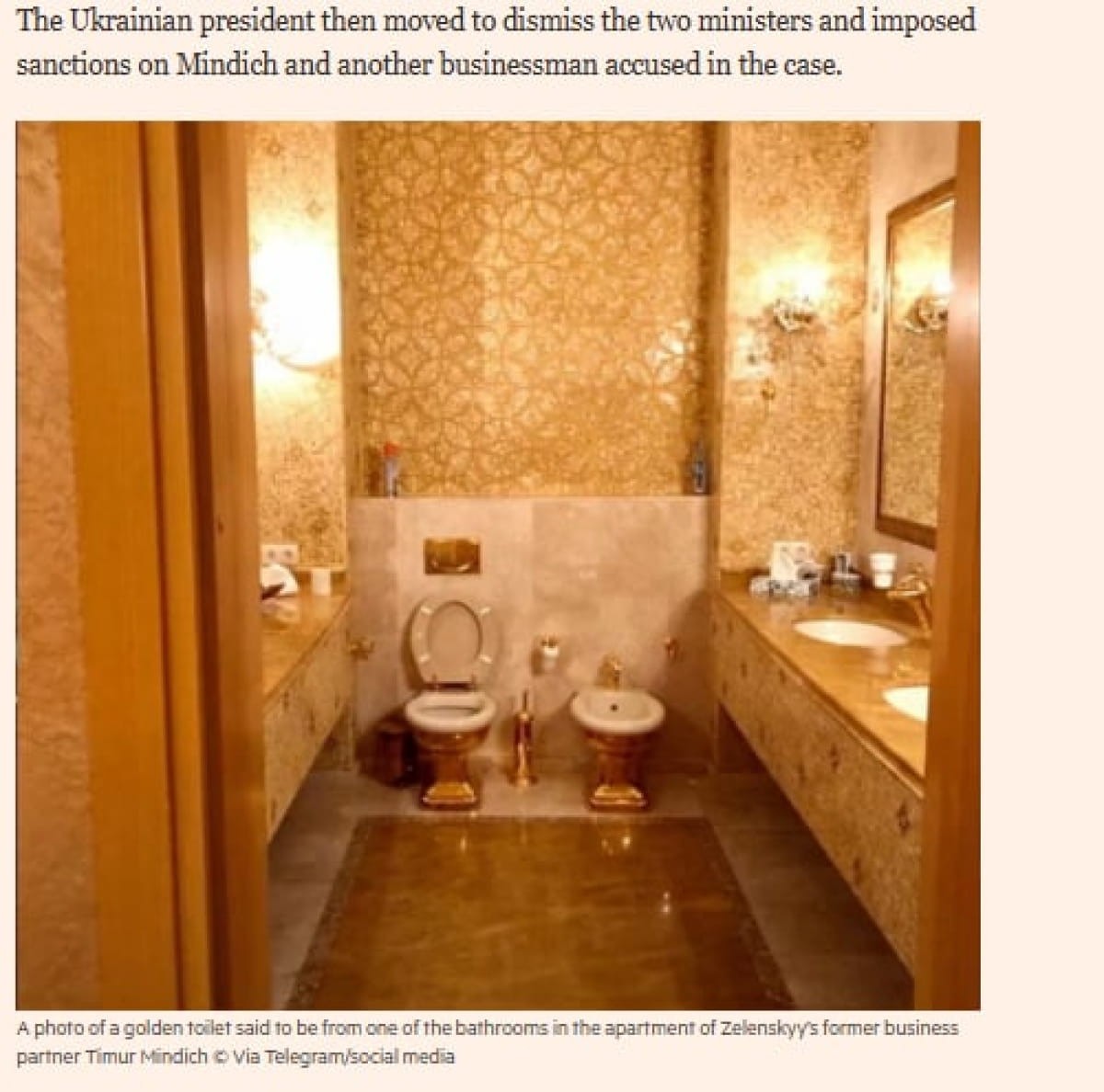 "Правоохранители проводят обыски в роскошных киевских квартирах, в одной из которых найден золотой унитаз. Фотографии мешков, наполненных наличными. Аудиозаписи разговоров чиновников о стратегиях отмывания денег. Это лишь некоторые из подробностей, которые шокировали украинцев в течение последней недели, когда администрация президента Владимира Зеленского оказалась в эпицентре крупнейшего коррупционного скандала с момента его вступления в должность, что дестабилизировало руководство Киева в критический момент войны", – пишет издание.