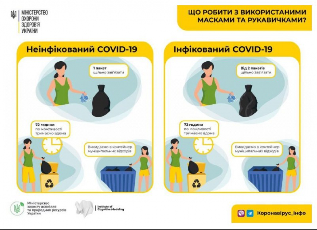 О том, как выбрасывать медицинские маски, рассказал министр защиты окружающей среды и природных ресурсов Украины Роман Абрамовский, передает "5 канал".