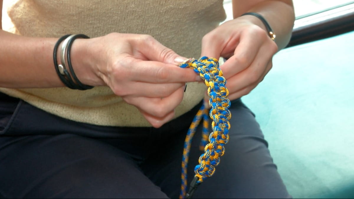 Эта многофункциональная вещь – паракорд. Наталья пришла на мастер-класс, который проходил в книжном магазине "Сяйво". Там из веревок плетут браслеты. Рассказывает, что такие видела и до полномасштабного вторжения в военторгах, однако сейчас браслеты будут стоить дороже. Поэтому, как ни крути, а своими руками – и с душой, и дешевле.