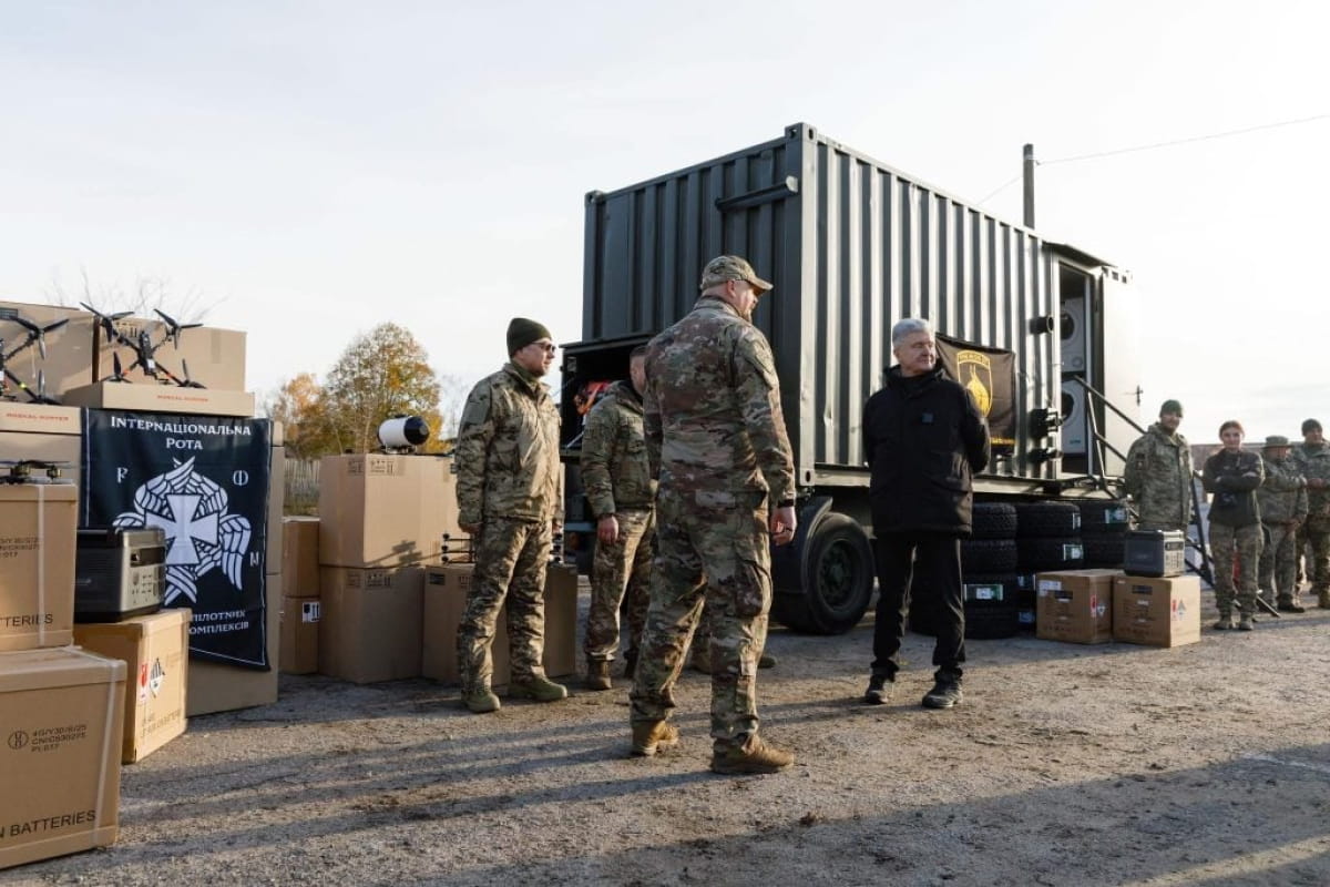 Порошенко привез для 15 подразделений, которые держат оборону: дроны, много оптоволокна, квадроциклы, РЕБы для защиты и многие важные позиции. Для строительства фортификаций – мобильные пилорамы, манипулятор, ремонтные мастерские, банно-прачечные комплексы.