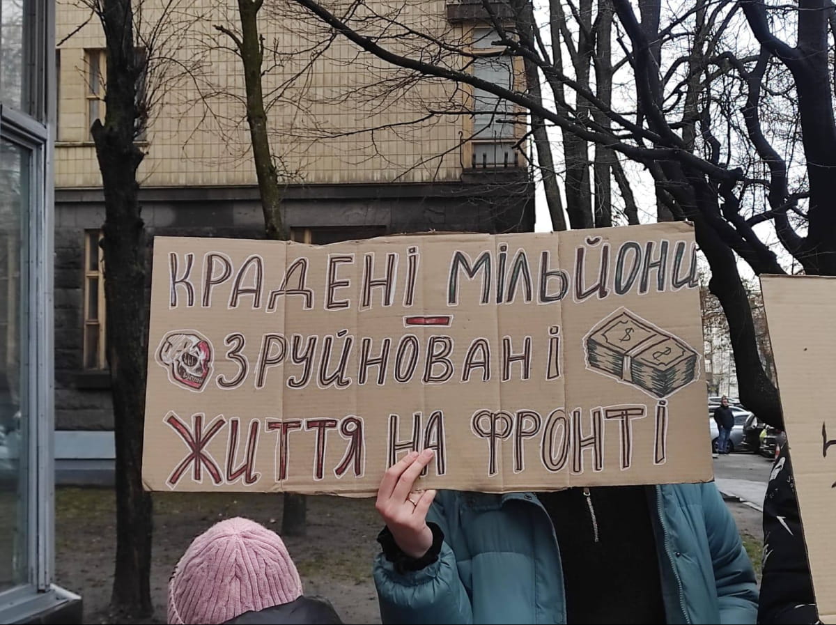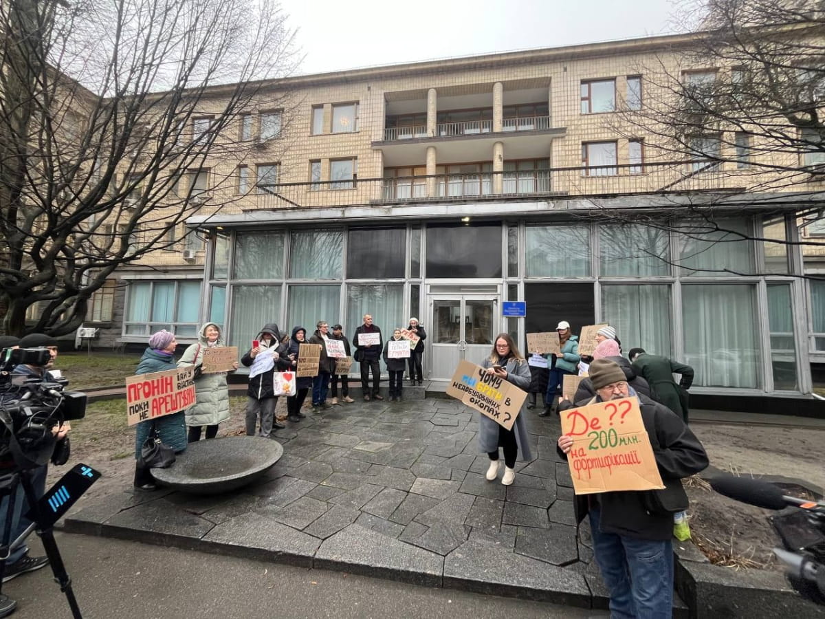 Под зданием комитетов Верховной Рады, где сегодня заседает ВСК по делу "Миндичгейт", проходит митинг с требованием уволить главу Госфинмониторинга Филиппа Пронина.