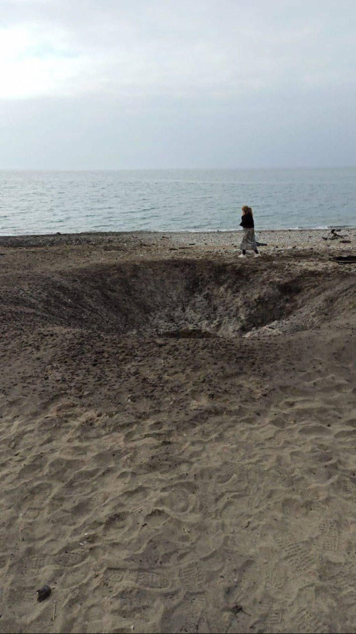 "Туапсе. Пляж. Сегодня после атаки. Что-то интересное долетело. Но, к сожалению, не попало. Ничего. В следующий раз скорректируют", – сообщил он.