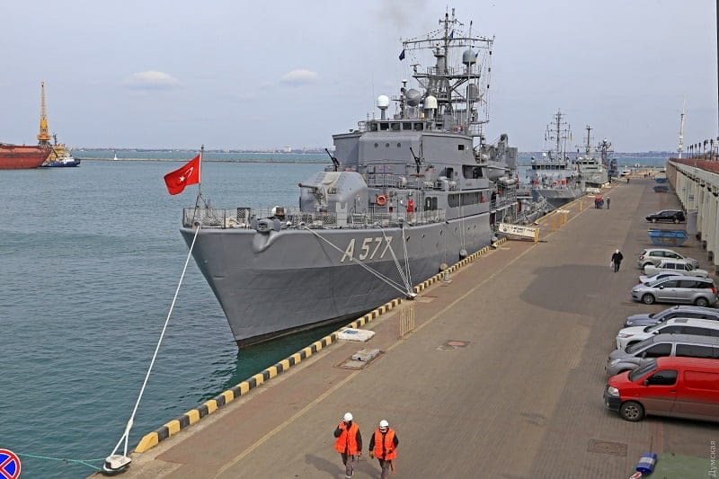 Сегодня, 10 марта, в одесском порту пришвартовались четыре судна Североатлантического альянса (НАТО) – два турецкие корабля, один испанский и один румынский. Об этом сообщает местное издание "Думская".