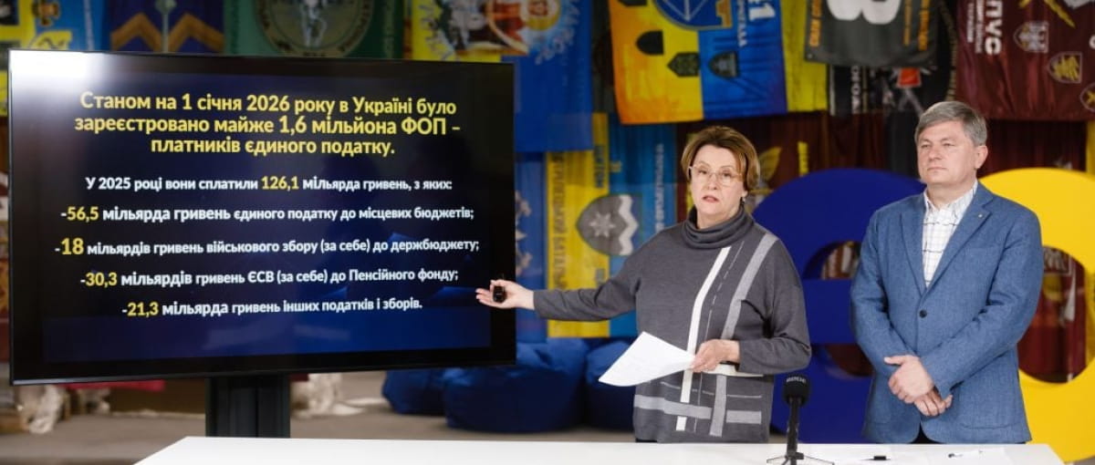"Это должно было касаться 628 тыс. физических лиц-предпринимателей. Вот данные за 2025 год. 1 млн 600 тыс. предпринимателей работают на упрощенной системе налогообложения. В 2025 году они уплатили 126 млрд грн налогов. 56,5 млрд грн – это единый налог в местные бюджеты. 18 млрд грн – это военный сбор в государственный бюджет. 30 млрд грн – ЕСВ в Пенсионный фонд. Прочих налогов 21,3 млрд грн. У них есть наемные работники, и таких 980 тыс. человек. В среднем 4 наемных работника на одного предпринимателя. ФЛП уплатили за наемных лиц 26,4 млрд грн в Государственный бюджет и местные в том числе", – рассказала Нина Южанина.
