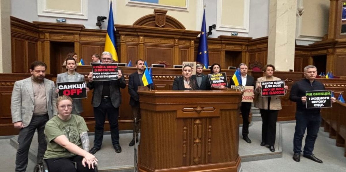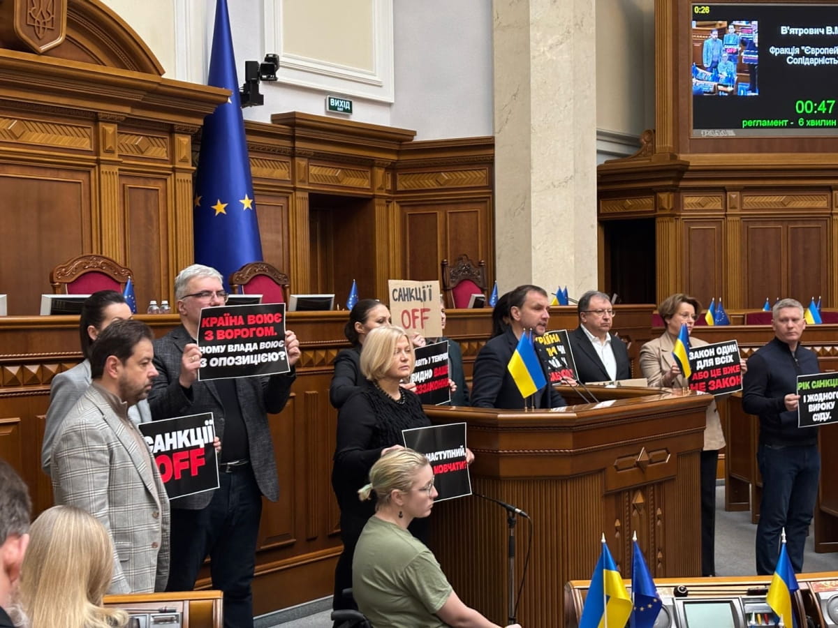 Народные депутаты от фракции "Европейская Солидарность" с трибуны парламента напомнили, что за год власть ни обществу, ни Верховному Суду так и не предоставила никаких объяснений, на каком основании вводились санкции.