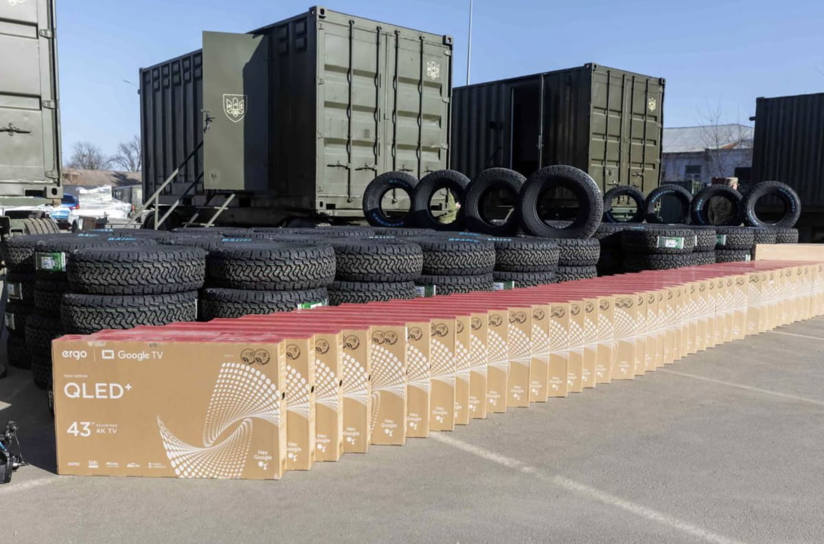 На этот раз военным передали 150 FPV-дронов, в том числе на оптоволокне, 50 комплексов "Молния", квадроциклы, 57 комплектов Starlink, детекторы дронов "Аспирин", генераторы, зарядные станции, 176 шин для пикапов, электронику, а также 10 прачечно-душевых комплексов.