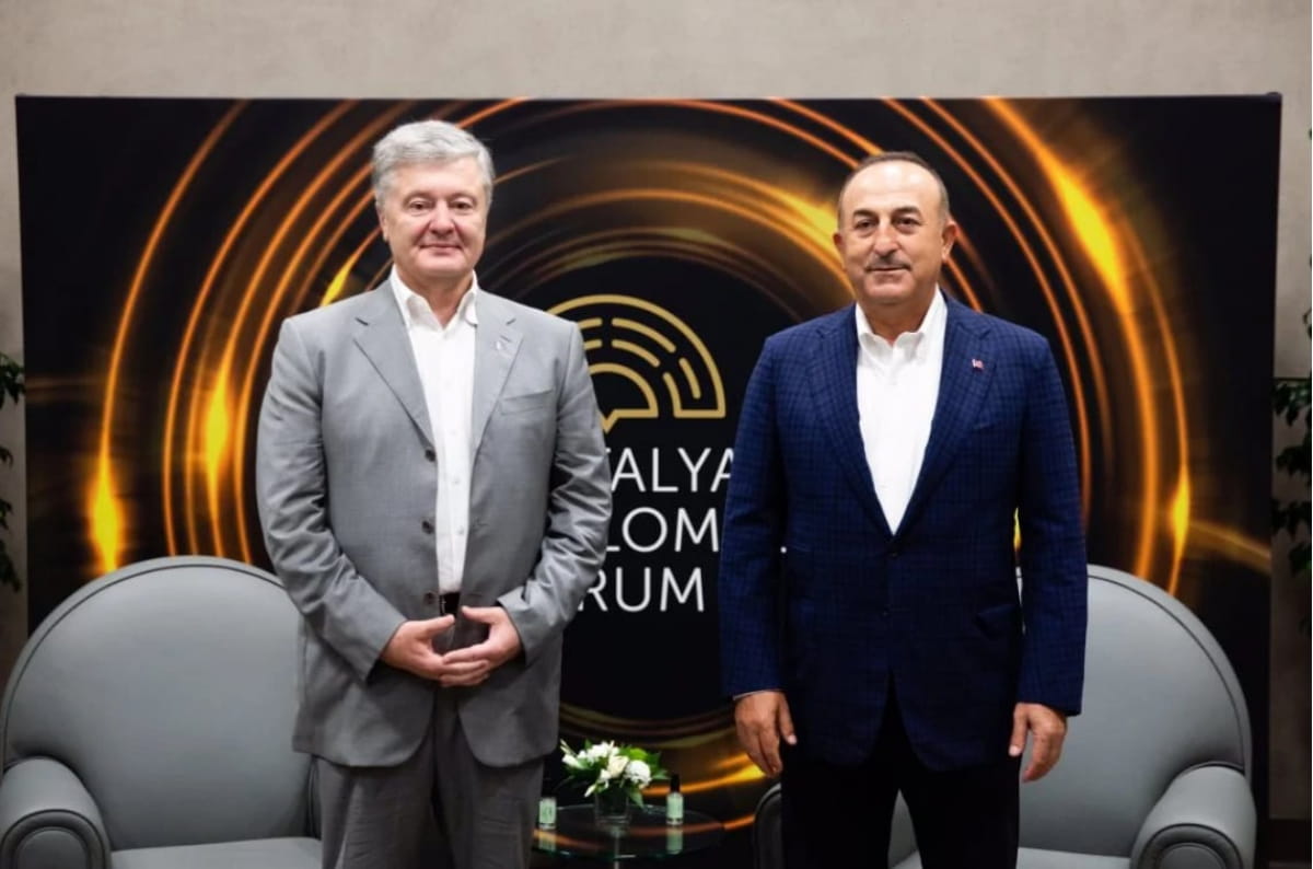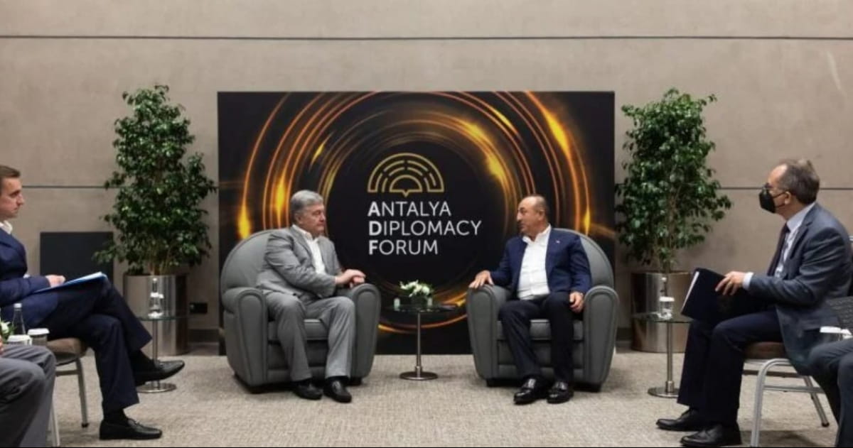 Пятый президент, лидер партии "Европейская Солидарность" Петр Порошенко, который принимает участие в Анталийском дипломатическом форуме, провел встречу с министром иностранных дел Турции Мевлютом Чавушоглу.