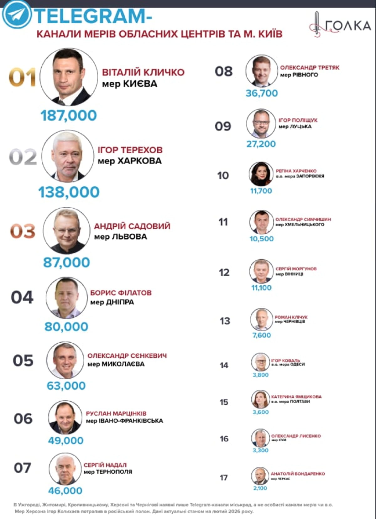 "Который с 2020 года возглавляет партийную ячейку "Слуг народа" на Львовщине и является депутатом Львовского облсовета. У Козицкого по состоянию на февраль 2026 года канал имеет 138 000 подписчиков. Для сравнения на местных выборах 2020 года во втором туре за мэра Львова Андрея Садового проголосовали около 143 000 избирателей. (...) Для того чтобы понимать масштабы вовлечения аудитории и влияния можно просто сравнить количество избирателей, которые отдали голоса за мэров городов областных центров и количество их подписчиков. Если смотреть на Telegram-каналы мэра Киева Виталия Кличко, мэра Львова Андрея Садового или мэра Днепра Бориса Филатова и сравнить количество подписчиков с количеством избирателей, которые отдали за них голоса в 2020 году, то количество подписчиков будет меньше где-то на 50%", – говорится в материале.