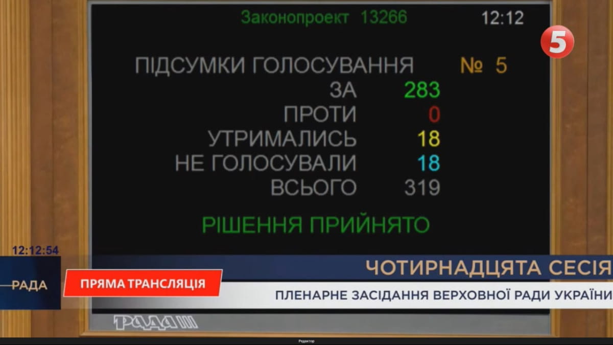 За закон проголосовали 283 народных депутата.