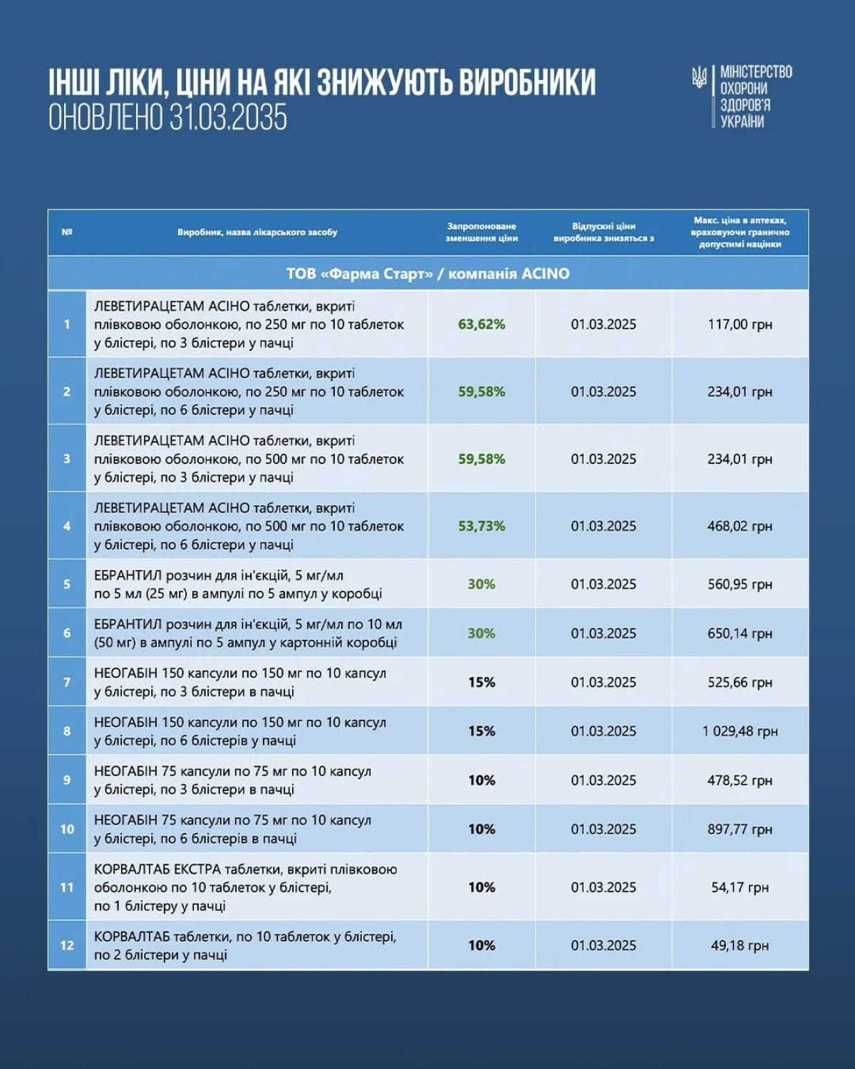 "Мы продолжаем диалог с производителями лекарства, чтобы расширить перечень доступных по сниженным ценам препаратов. Также работаем над прозрачностью ценообразования и честной конкуренцией на фармацевтическом рынке, чтобы каждый пациент мог получать лекарства по справедливой цене", – написал министр.
