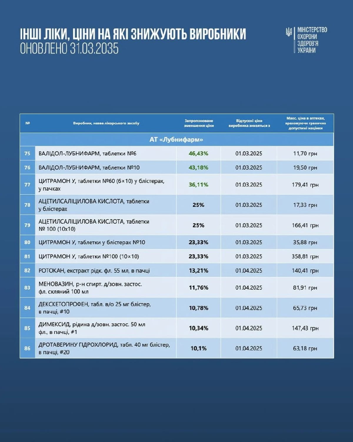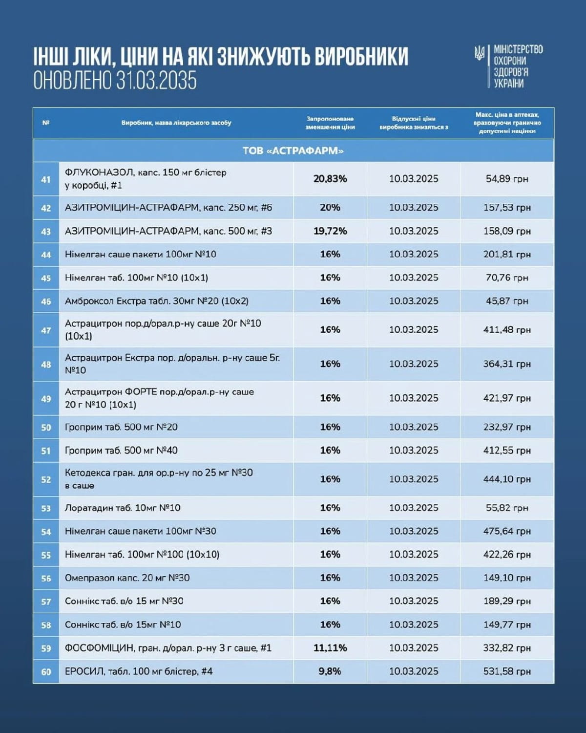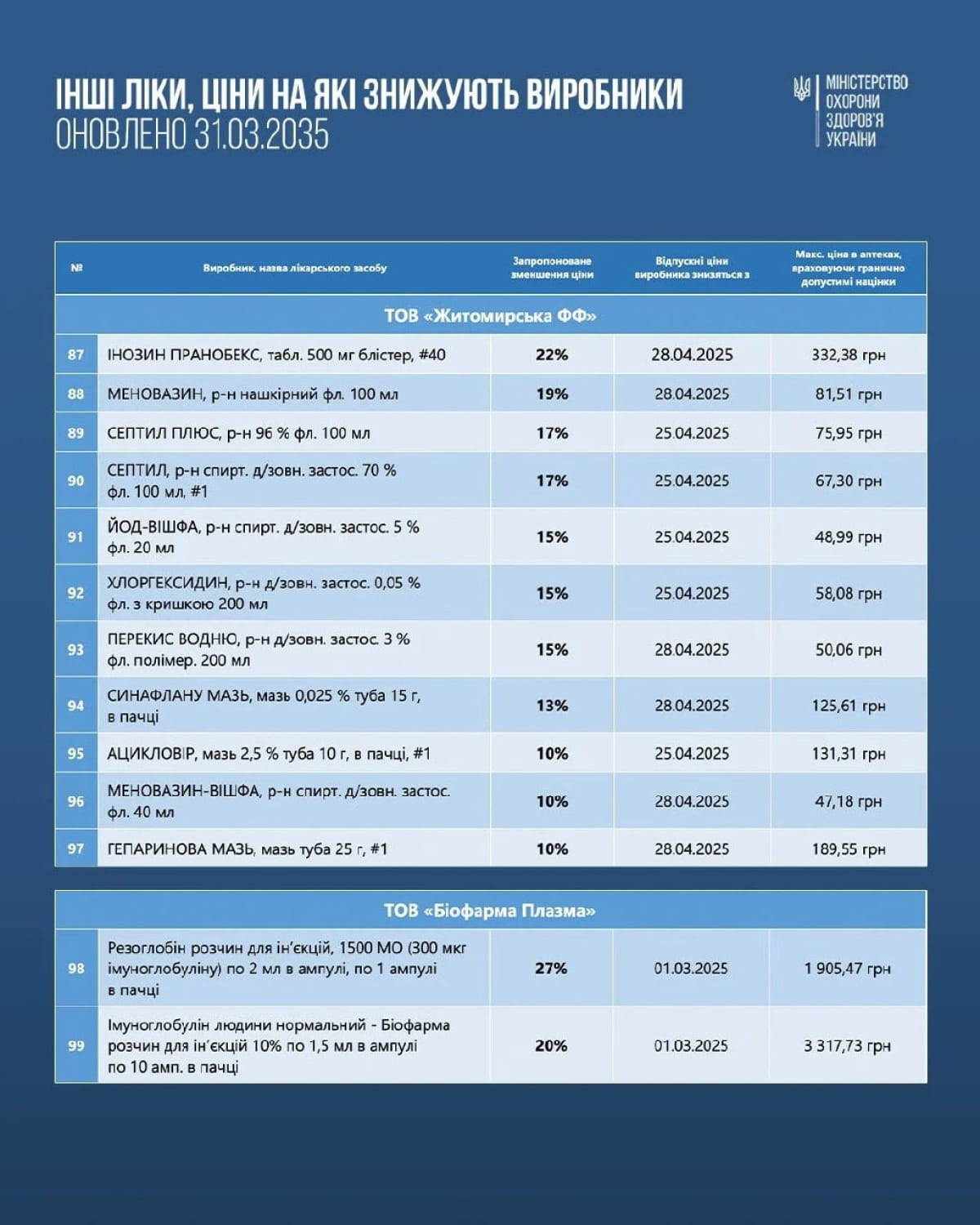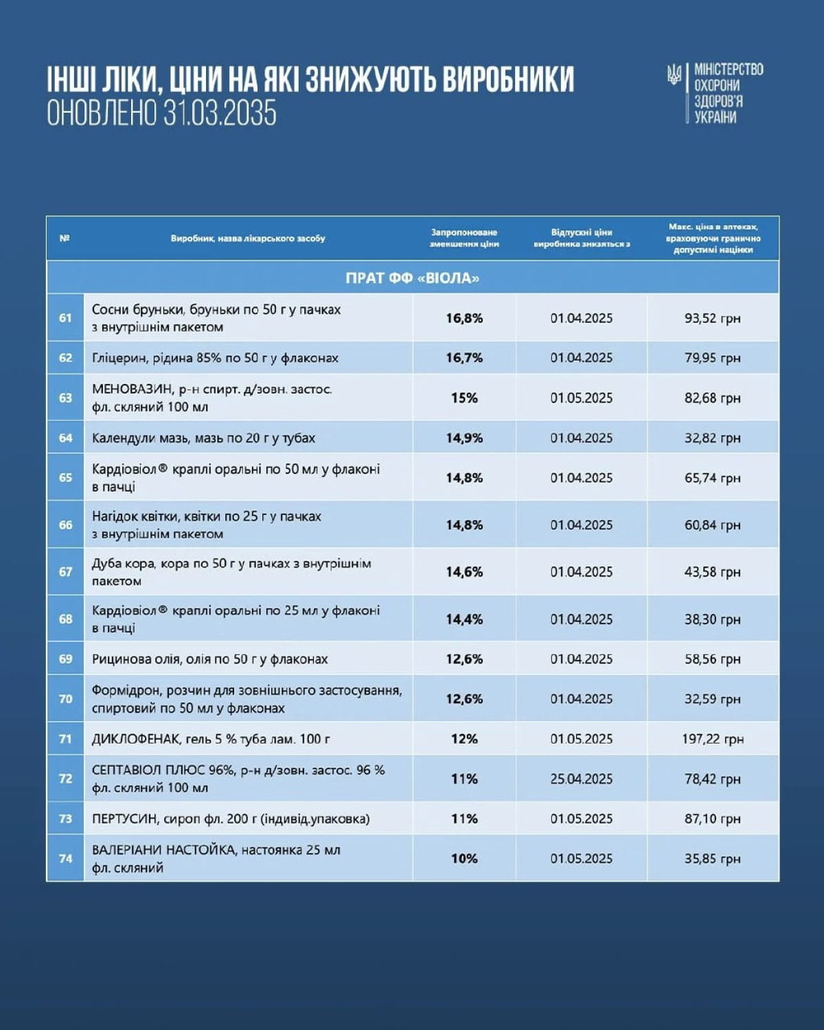 "По итогам переговоров с украинскими производителями, нам удалось достичь договоренностей по снижению цен еще более чем на 200 лекарственных средств. На половину из них цены уже снижены, что касается остальных препаратов – снижение начнется в течение апреля", – рассказал Ляшко.