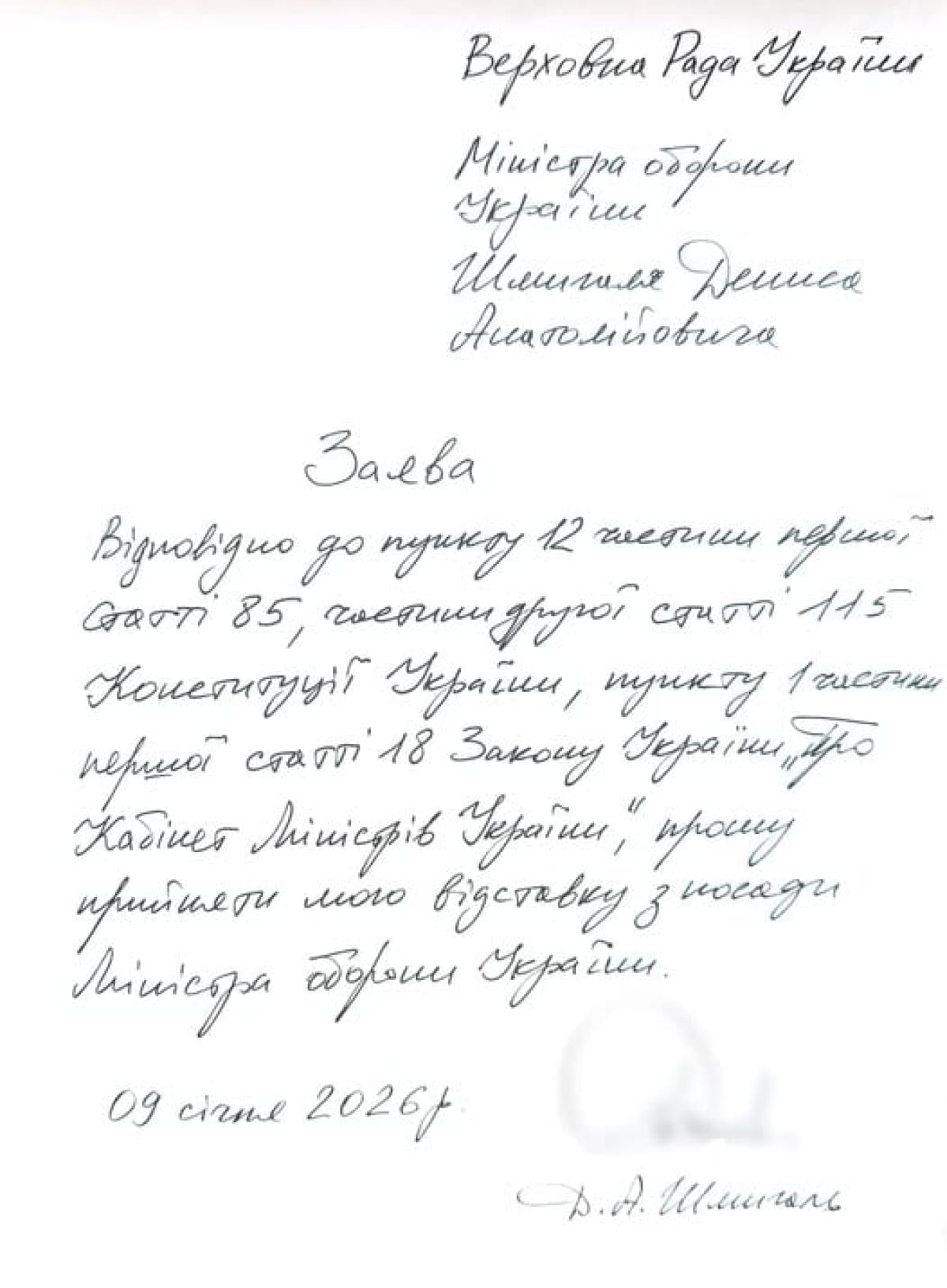Также в парламент поступило заявление об отставке Министра обороны Украины Дениса Шмыгаля. Его рассмотрение состоится в определенном законом порядке.