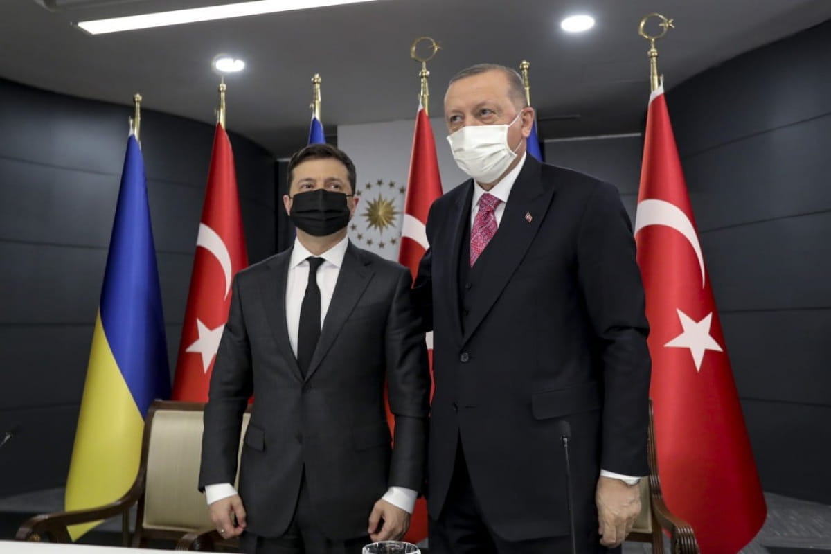Говорили о ситуации на Донбассе. Эрдоган заверил Зеленского в поддержке территориальной целостности нашего государства. И добавил, что ситуацию надо решать мирным способом и в рамках международного законодательства.