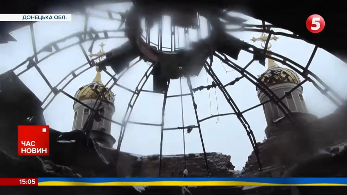 В Свято-Успенском храме – главной церкви некогда многотысячного города – черные даже росписи на стенах. От огня, который сожрал ее изнутри. Этот храм, как и многие церкви в Донецкой области, был московского патриархата и за годы большой войны так и не перешел в ПЦУ. В прошлом году осенью в церковь прилетело трижды. После третьего прилета вспыхнул пожар.