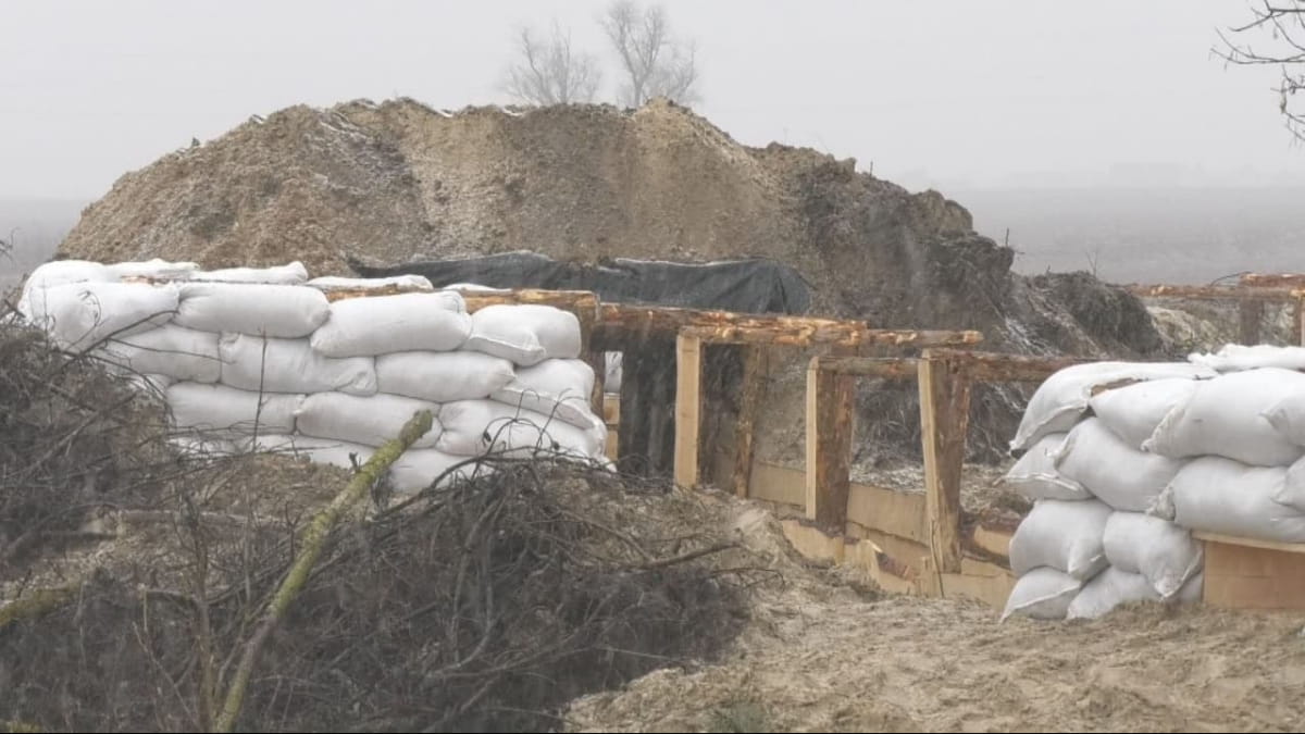 "Это бойница, где будет находиться боец. Вот смотровое окно, которое будет укреплено мешками, сверху будет настил для противоосколочной защиты", – добавил Федор Кузьмич.