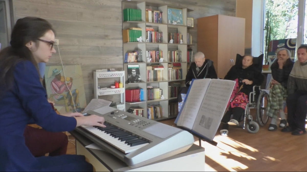 В зале отдыха паллиативного отделения больницы уже собрались пациенты – ждут музыкантов. Они приезжают почти еженедельно и устраивают концерты, чтобы развлечь больных.