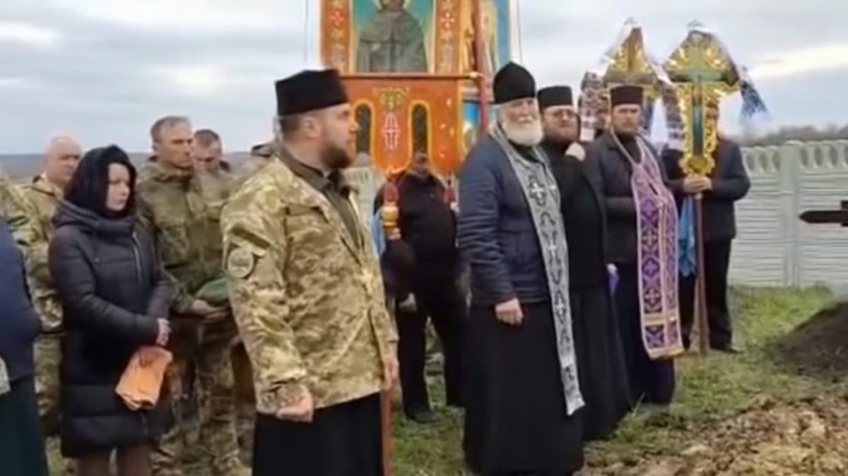 Отмечается, что перед погребением 24-летнего военнослужащего ВСУ Ярослава Карлийчука священник ПЦУ Роман Грищук выступил с речью, в которой напомнил о "благословении российской агрессии" Московским патриархатом.