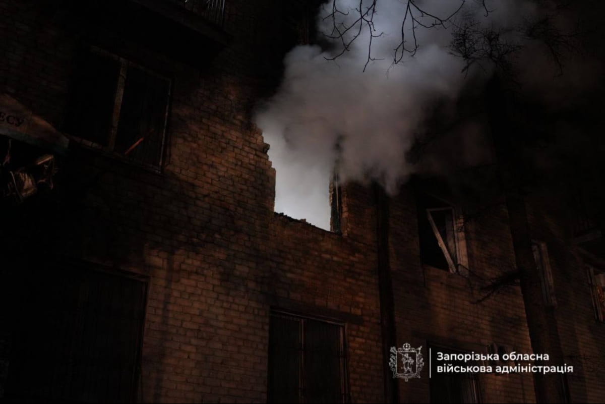 "Три удара нанесли россияне ночью по Запорожью. Произошло несколько пожаров. Сгорела машина. Изуродовано одно из учебных заведений, повреждено дорожное полотно", – говорится в сообщении.