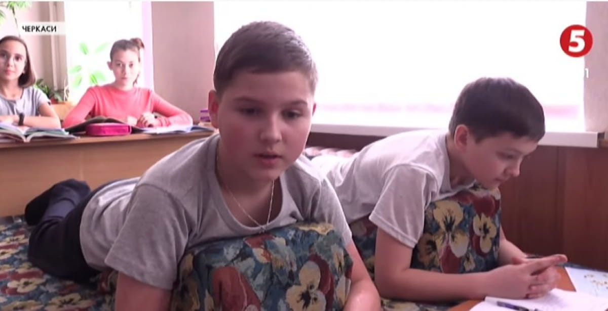 В Черкасской санаторной школе обучаются более полутысячи детей с различными формами сколиоза. Каждые двадцать минут ученики делают специальную зарядку, кто-то учится лежа.