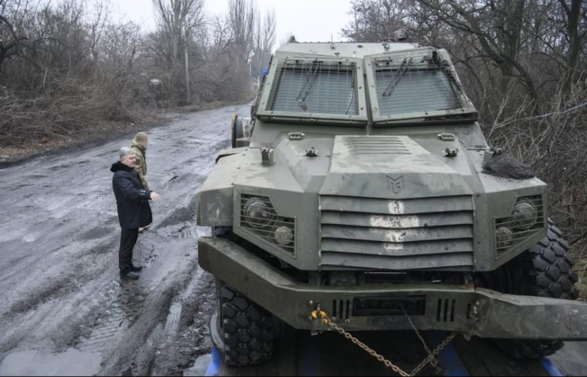 Пятый президент Украины, народный депутат Петр Порошенко (фракция "Европейская солидарность") во время поездки на Донбасс отправил на ремонт поврежденный во время боевых действий броневик MLS Shield, спасший жизнь 8 украинских десантников.