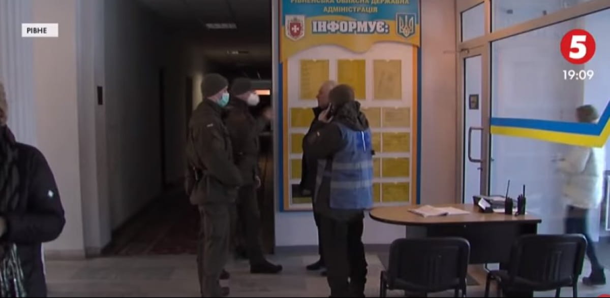 В Ровно областная государственная администрация ввела температурный скрининг. Чтобы предотвратить распространение коронавируса, нацгвардейцы на входе всем измеряют температуру электронными термометрами. У кого она выше 37,5 градусов – внутрь нельзя.