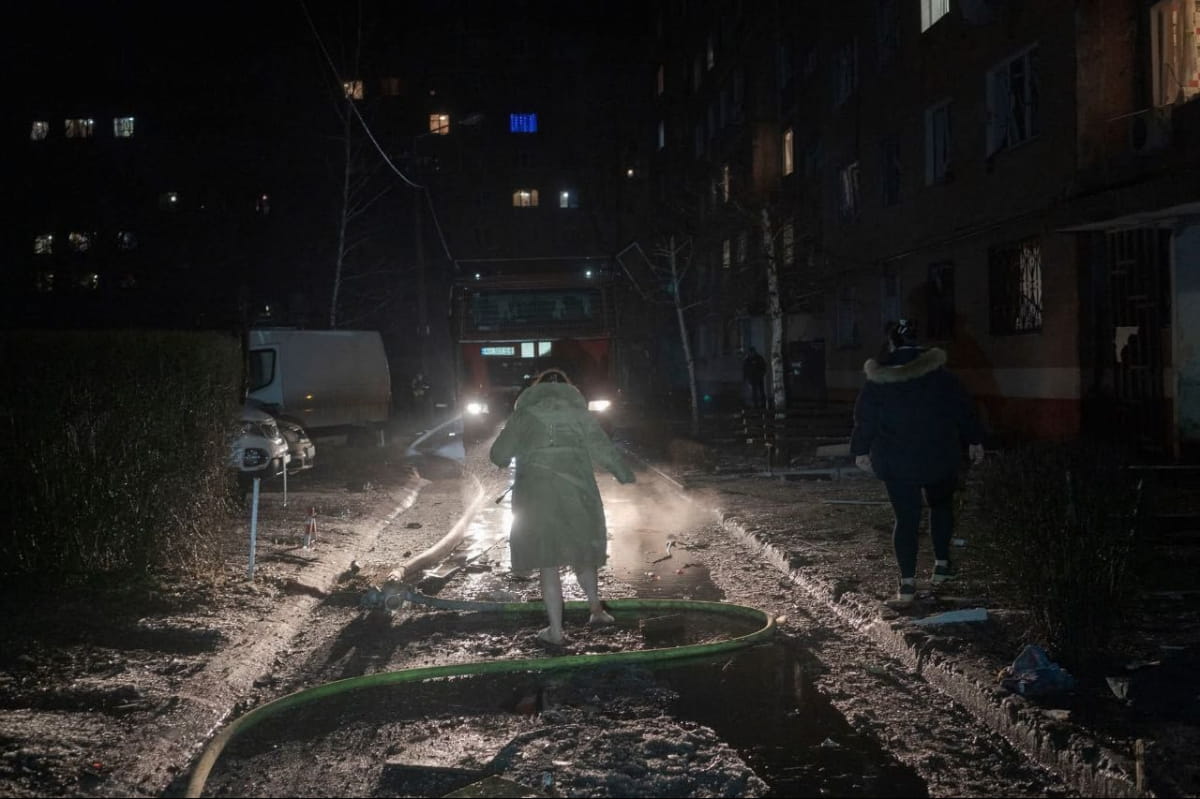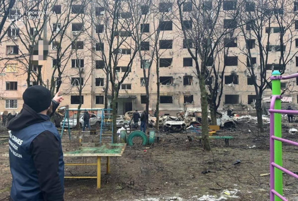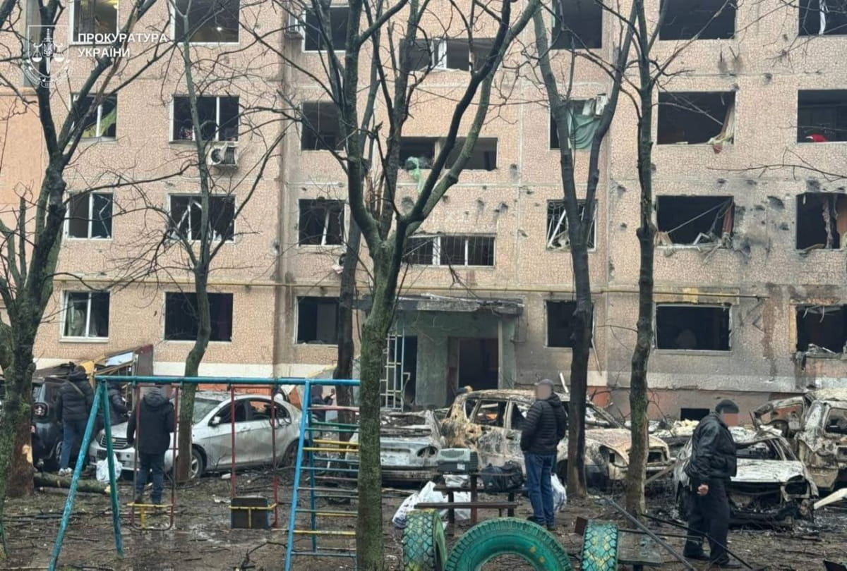 "В результате атаки загорелись квартиры на 3-м этаже девятиэтажного дома и автомобили во дворе. К сожалению, один человек погиб, еще двое получили ранения", – отметили спасатели.