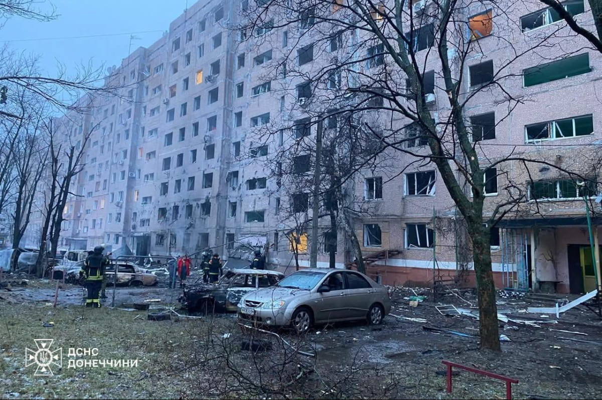 Российский ударный беспилотник попал в девятиэтажный жилой дом в Краматорске Донецкой области, в результате атаки погиб один человек.