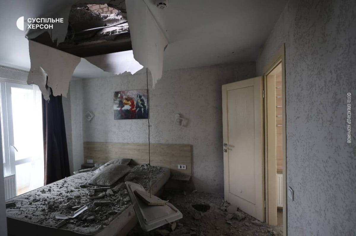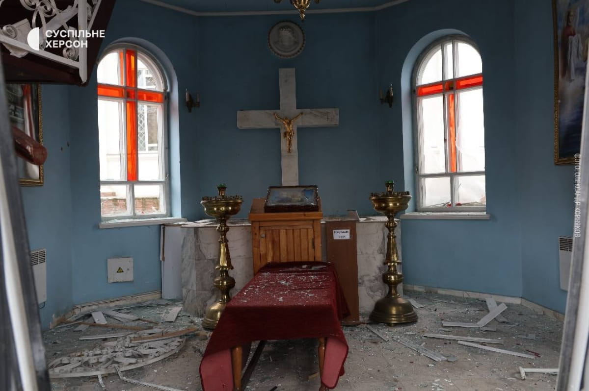 "В частности, повредили 16 многоэтажек и 67 частных домов. Также оккупанты изуродовали церковь, магазин, складское помещение, хозяйственное сооружение, газопровод, частный гараж и автомобиль", – подчеркнул руководитель Херсонской ОВА.