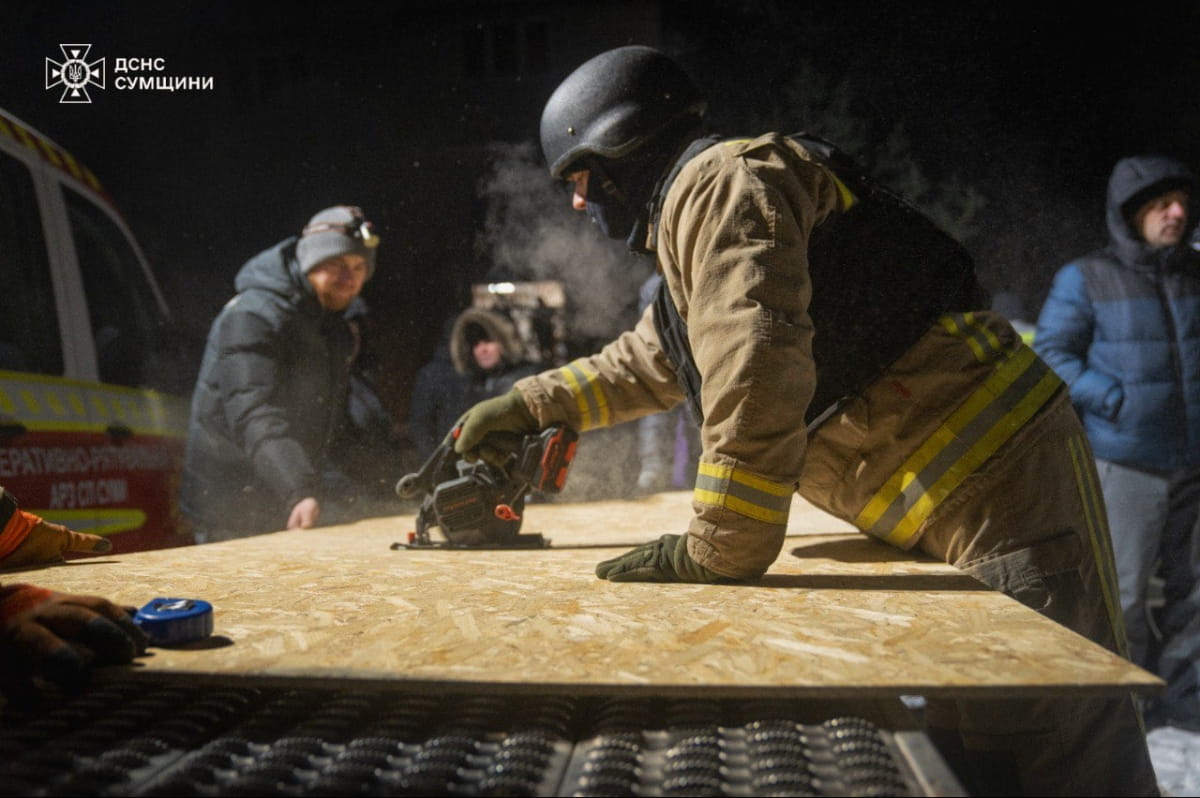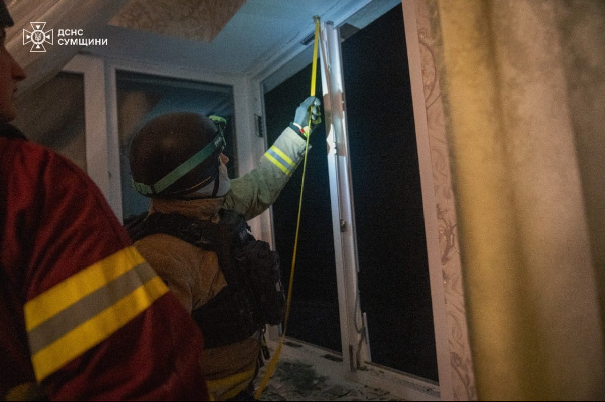 В пресс-службе ГСЧС сообщили, что в городе Сумы взрывной волной выбиты окна в многоквартирных жилых домах и повреждены автомобили. Совместно с волонтерами и представителями коммунальных служб спасатели проводят аварийно-восстановительные мероприятия.